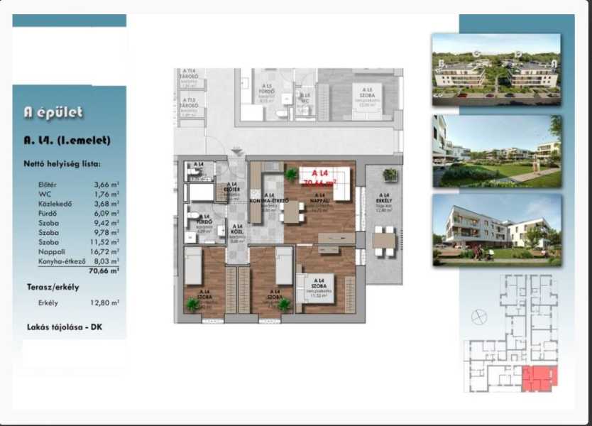 Új építésű lakások és üzlethelyiségek eladók Győr egyik legexkluzívabb új lakóparkjában! Modern tervezés - letisztult vonalak - minőségi kivitelezés - energiatakarékos anyaghasználat. Kell ennél több? IGEN! értékálló befektetés! ITT MINDEZT MEGTALÁLJA Győr- Révfalu szélén, 2024-ben indult építkezés. A lakópark négy, egyenként 20 lakást és 4 üzlethelyiséget magában foglaló épületből áll. Lakások mérete: 45–105 m² melyben mint az egyedül állók - párok - de még a családok is megtalálhatják otthonukat. Ez a lakás az első emelet L4. számu 70,48 négyzetméter + 12,80 erkéllyel Amerikai konyhás nappali és 3 hálószoba + erkély Az ár emeltszintű fűtéskész árat jelent. Ajánlott kulcsrakész ára a beruházónak: 87,5 MFt. Átadás: 2026 december, kulcsrakész állapotban. Az ár a emeltszintü szerkezetkész állapotra vonatkozik. Szerkezete 30 cm vázkerámia /tégla/ falazat, 20 cm homlokzati hőszigetelés, 25 cm hanggátló téglafal a lakások között. Nyílászárói 5 légkamrás, 3 rétegű üvegezésű műanyag ablakok (kívül aranytölgy, belül fehér színben), redőnytokkal. Fűtés-hűtés: Házközponti hőszivattyús rendszer padlófűtéssel, egyedi hőmennyiség mérővel, split klímával. Lakásokon kívül még mód van a vásárlásra: Tárolók: 1,67–4,76 m² 1MFt-tól 2,99MFt-ig Teremgarázs: 4,990 MFt-tól 5,990 MFt-ig. Fedett beálló: 2,990 MFt-ig Felszíni beálló: 1,990 MFt-ig HITELÜGYINTÉZÉS BIZTOSÍTOTT! Vegye fel velünk a kapcsolatot, és biztosítsa helyét ebben a különleges lakóparkban! Hívjon! Akár hétvégén is. I. emelet L 1 lakás 65,9 m2+ 13 m2 erkély kulcsrakész ár 83,2 millió L 2 lakás 52,73 m2 +20m2 erkély kulcsrakész ár 71,5 millió L 3 lakás 65m2 + 21,4m2 erkély kulcsrakész ár 86,9 millió L 4 lakás 70,41m2 +12,8 erkély kulcsrakész ár 87,5 millió L 5 lakás 69,54m2 +6,8m2 erkély kulcsrakész ár 84,5 millió L 7 lakás 60,91m2+8,8m2 erkély kulcsrakész ár 75,5 millió L 8 lakás 79,96m2+11,52m2 erkély kulcsrakész ár 98,9 millió L 9 lakás 53,28m2+10,9m2 erkély kulcsrakész ár 67,9 millió II. emelet L 10 lakás 65,93m2+13m2 erkély kulcsrakész ár 83,2 millió L 11 lakás 52,72m2+20,8m2 erkély kulcsrakész ár 71,5 millió L 13 lakás 70,41m2+12,8m2 erkély kulcsrakész ár 87,5 millió L 14 lakás 69,54m2+6,8m2 erkély kulcsrakész ár 84,5 millió L 16 lakás 60,91m2+8,8m2 erkély kulcsrakész ár 75,5 millió L 17 lakás 79,96m2+11,52m2 erkély kulcsrakész ár 98,9 millió L 18 lakás 53,28m2+10,9m2 erkély kulcsralész ár 67,9 millió L 19 lakás 89,31m2+31,2m2 erkély kulcsrakész ár 119,9millió L 20 lakás 104,4m2+49,18m2 erkély kulcsrakész ár 133,9 millió
