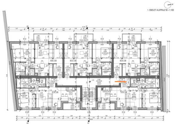Nyíregyháza belvárosában , prémium minőségű, új építésű lakások! A társasházban 10 lakás, 7 garázs, 5 kocsibeálló és egy üzlethelyiség került kialakításra . 2 emeletes A lakásokban amerikai konyhás nappali, hálószoba, fürdőszoba, WC, előtér, erkély található. lakás 47,96 m2, erkély: 3,6 m2 - 1. emelet - tégla építésű, szigetelt - antracit korcolt fémlemezű nyeregtető - műanyag nyílászárók - kondenzációs kombi kazánnal, radiátoros illetve padlófűtés - laminált padló illetve járólap - földszinti közös tároló - A lakáshoz önálló garázs 12,5 M Ft-ért, vagy udvari beálló 3,5 M Ft-ért vásárolható. Várható átadás: 2026. év vége Az ingatlan elhelyezkedése, energetikai mutatói biztosítják nem csak a kényelmet, hanem az értékállóságot is! Bővebb információkért, teljes körű, ingyenes bankfüggetlen ügyintézéssel várom hívását!