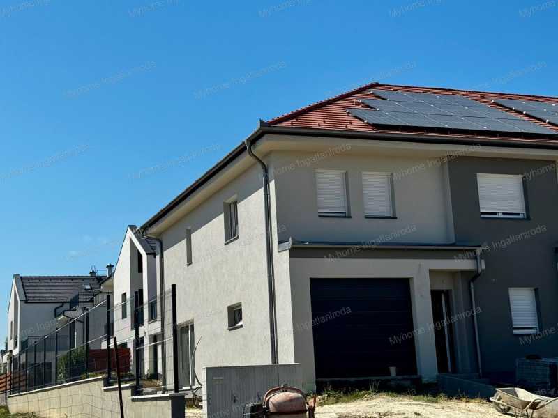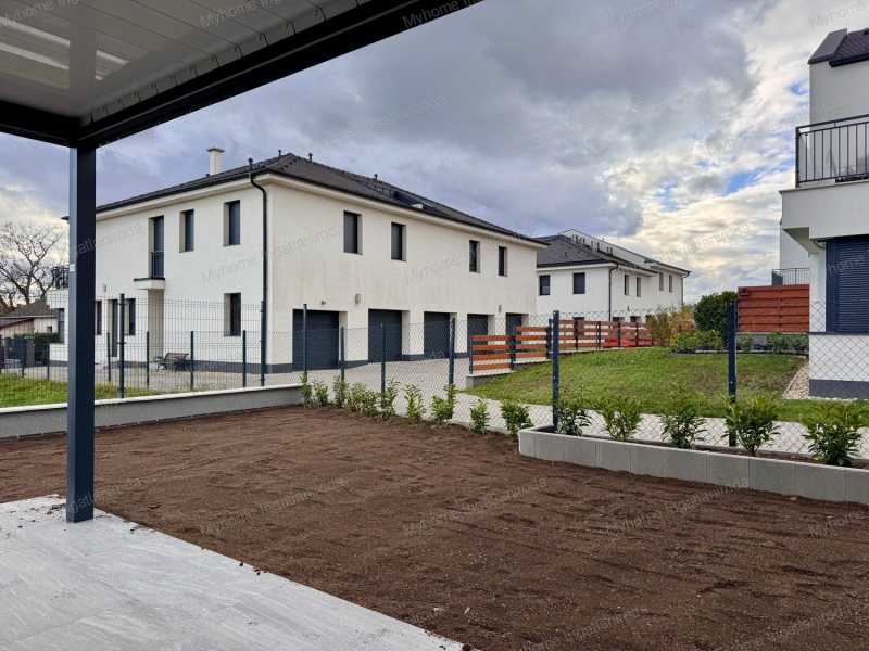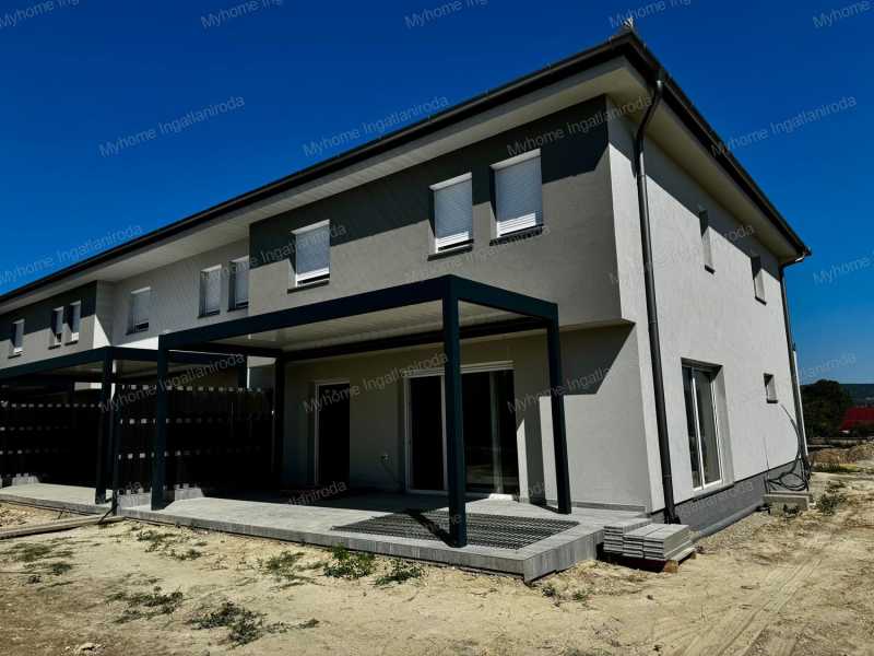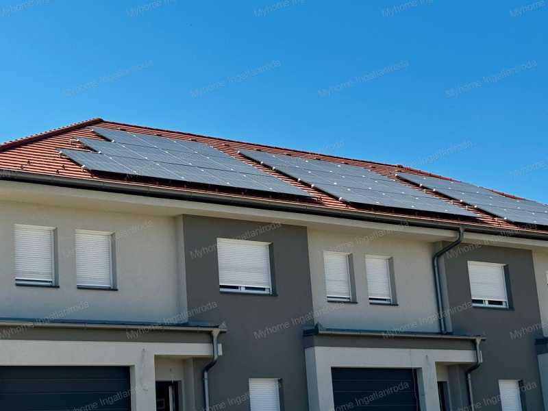 Eladó új építésű sorház Keszthelyen - Balatoni panorámával, modern kialakítással! Ár: • jelenlegi állapotban: 114 900 000 Ft • kulcsrakész állapotban: 126 900 000 Ft Ingatlan jellemzői: • Lakótér: 150 m² • Terasz: 27,66 m² fedett terasz bioklimatikus pergolával • Garázs: 15,47 m² + további 2 gépkocsibeálló térkövezett felületen • Telek: 300 m², parkosítva, füvesítve • Fekvés: déli, világos, tágas terekkel Energiahatékony megoldások: • 5 kW-os napelemes rendszer, amely fedezi a ház energiaigényét • Hőszivattyús fűtés-hűtés, helyiségenként szabályozható padlófűtéssel • Háromrétegű üvegezésű nyílászárók, motoros alumínium redőnyök szúnyoghálóval • Modern szellőztetőrendszer (Vent Axia TH100) • Hajdú Z120 Smart 120 literes elektromos bojler Belső elrendezés: Földszint: • amerikai konyhás nappali-étkező + kamra • hálószoba/dolgozószoba • fürdőszoba WC-vel • garázs • 27,66 m² fedett terasz Emelet: • 1 fő hálószoba saját fürdővel • 3 további szoba (egy balatoni panorámával) • nagyobb fürdőszoba káddal és zuhanyzóval • külön WC Extrák: • panorámás emeleti szoba • 3 fürdő + 3 WC • bioklimatikus pergola üvegezési lehetőséggel • tágas, napfényes terek • garázs + 2 parkolóhely Lokáció: • Keszthely központja és a Balaton-part 5 perc sétára • iskola, óvoda, orvosi rendelő, bevásárlás a közelben • Hévíz, Festetics-kastély és a környék turisztikai látványosságai könnyen elérhetők Finanszírozás: • Otthon Start hitel - akár 50 millió Ft-ig, fix 3% kamattal, első lakásra (2025. szeptember 1-től) • CSOK Plusz és Zöldhitel igénybe vehető • Illetékmentesség és ÁFA-visszatérítés a jogszabályi feltételek szerint Ez a modern sorház nemcsak egy ingatlan, hanem életstílus: alacsony rezsi, tágas és világos élettér, balatoni panoráma és fenntartható technológia várja új tulajdonosát. Forduljon hozzám bizalommal: Berki Mónika - Myhome Az ingatlanban otthon