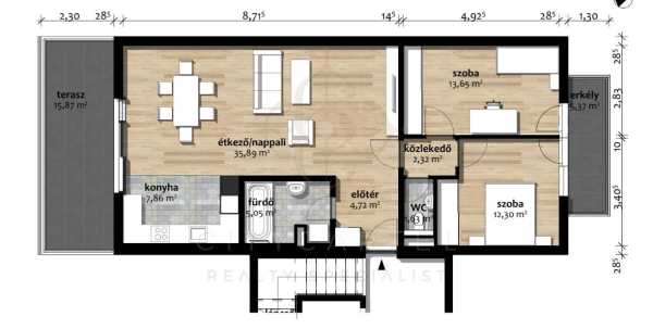 Új építésű, különálló lakás teraszokkal a II. kerületben – 93,5 nm bruttó alapterület, összesen 21 nm erkély és terasz, természetközeli környezet, kiváló közlekedés A II. kerület kedvelt, zöldövezeti részén, Hűvösvölgyben kínálunk eladásra egy új építésű, tetőtéri, világos lakást, ahol a kényelem, a fenntarthatóság és a modern technológia találkozik. A lakás egy öt lakásos társasház felső szintjén helyezkedik el, különálló, falszomszédok nélküli egységként, így valódi privát szférát biztosít. Főbb paraméterek: Bruttó alapterület: 93,5 nm Nettó alapterület: 83 nm Terasz és erkélyek összesen: 21 nm Szobaszám: nappali + 2 hálószoba Fürdőszobák: 1 (zuhanyzós) Nappali belmagassága: eléri a 4,5 métert a tetőgerincnél – akár galéria is kialakítható Térdfal magassága: 1,7 méter vagy magasabb – a bútorozást nem zavarja Konyhában: felső szekrények beépíthetők Terasz: 16 nm, déli benapozású, a nappaliból nyíló Erkély: 5 nm, mindkét hálószobából megközelíthető Nincs kertkapcsolat Műszaki tartalom: Megújuló forrásból származó természetes építőanyagok Saját hőszivattyús fűtés és hűtés helyiségenként szabályozhatóan Elektromos padlófűtés a konyhában és fürdőszobában Törölközőszárító radiátor Gépi szellőztetés párakezeléssel, vírus-, baktérium- és allergénszűréssel Fa-alumínium nyílászárók elektromos árnyékolóval és rovarhálóval LOXONE okosotthon rendszer Elektromos járműtöltési lehetőség saját hálózatról Napelem előkészítés Prémium minőségű burkolatok, szaniterek, választható kivitelben Lakásonként önálló, független gépészeti rendszer – nincs közös rendszer Környezet és elhelyezkedés: A társasház egy 2150 nm-es, erdő melletti telken épül, szinteltolásos kialakítással. A mindennapi életet kiváló infrastruktúra és tömegközlekedés segíti: a Budagyöngye Bevásárlóközpont mindössze 10 perc villamossal, a közelben neves nemzetközi iskolák, üzletek, parkok is megtalálhatók. Extrák: Teremgarázs beállóhely: 12 millió Ft / hely Tároló: 1,2 millió Ft / nm Ár: kulcsrakész állapotra vonatkozik (konyhabútor nélkül), prémium műszaki tartalommal Átadás várhatóan: 2025. szeptember Elérhető lakások száma a projektben: már csak 3 lakás maradt elérhető: egy 4 szobás, egy 5 szobás, valamint a jelen hirdetésben szereplő. Ha a hirdetés felkeltette érdeklődését, kérem, keressen bizalommal további információért vagy személyes megtekintés egyeztetéséhez.