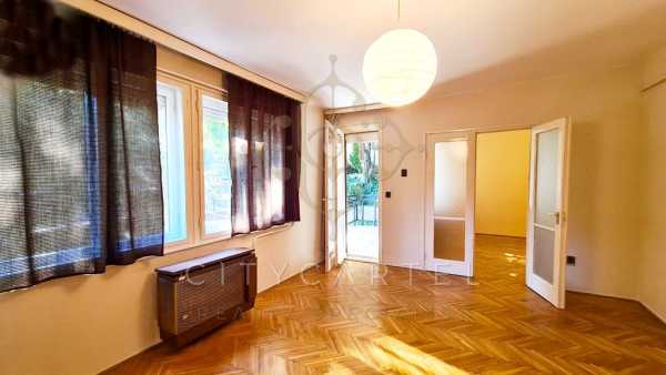 Jó elrendezésű világos lakás minden korosztálynak! A Budagyöngye bevásárló központtól 10 percre a Tárogató úton, ősfás, parkosított és körbekerített telken, tégla építésű, 56 nm-es két erkélyes, körbejárható kettő szobás, gázkonvektoros földszinti lakás tárolóval eladó. A ház a Hűvösvölgyi útról is megközelíthető, de a közelebbi bejárat a Tárogató út felől lehetséges. Innen automata kapunyitós személyi bejárat, és a garázs is innen közelíthető meg. A 12 lakásos két szintes, csendes társasházban szintenként négy lakás helyezkedik el. Bár a tulajdoni lap szerint földszinti, az erkély alatt helyezkednek el a garázsok, a lépcsőházból pedig 7 lépcső vezet a lakáshoz, ezért inkább magasföldszintnek tűnik. A parkettás nagy szobából nyílik a nagyobbik erkély, és innen közelíthető meg a másik szintén parkettás szoba. Mindkét szobán nagy ablakok, ezzel tökéletesen megvilágítva mindkettőt. A kisebbik szobából a gardrób nyílik, melynek folytatása a kádas fürdőszoba. Ennek másik bejárata az előszobából, mellette a külön WC helyezkedik el. Bejárattól balra egy kicsi spejz, amiben egy hűtő is elhelyezhető. A szemben lévő konyha felől a kisebb erkélyre jutunk, az üvegajtó miatt ez is egész nap világos. A két konvektor három éve teljesen újra cserélve, és bár az ablakok nem hőszigeteltek, a déltől mindkét szobába beáramló napfény biztos néhány fokot rásegít a fűtésre. A házban már nagyon sok lakásban cirkófűtés működik, ennek megvalósítása itt is lehetőség. A meleg vizet villanybojler adja, a közös költség 25 949 Ft. A lakás festés után költözhető, de igénytől függően korszerűsítésre szorul. Megvásárolható, de nem kötelező a külön HRSZ számon lévő 19 nm-es garázs. Ennek ára 15 Millió Ft. Közös költsége 6550 Ft. Parkolás az utcán is lehetséges, ingyenes. Rövid sétára a Budenz úti Gimnázium, Általános Iskola, óvoda, és a villamosokkal vagy buszokkal a Széll Kálmán tér 20 perc alatt elérhető. A 61-es, 56-os villamostól a Hűvösvölgyi bejárat van közelebb. Érdemes néha errefelé hazaérkezni, mert a gyönyörű fák és bokrok, virágok közötti séta megnyugtató lehet egy nehéz nap után. A Tárogató úti megközelítés sem megerőltető, az egyirányú forgalom miatt az autóforgalom korlátozott. Mindenkinek ajánlanám! Egyedülállóknak, gyermekeseknek, de idősebbeknek is! Irányár: 88 000 000 Ft Érd: Érmelléki Zsóka Tel: 06 30 815 2508