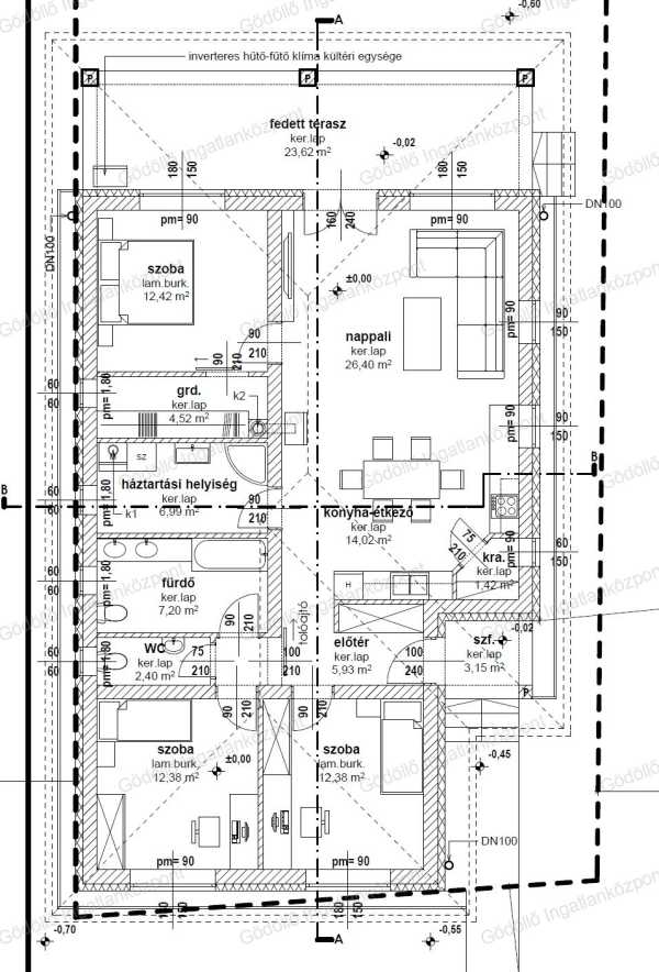 Domonyban megbízható építő által épülő nappali + 3 szobás energiatakarékos családi ház 912m2-es telken eladó! Műszaki adatok: - Az ingatlan hasznos lakóterülete 106m2, fedett terasza 23,62m2. - Falazata 30-as PTH téglából épül, kívül 15cm dryvit szigeteléssel. - Tetőszerkezete betoncseréppel lesz fedve, a fafödémre 25cm vastag ásványgyapot kerül. - Minden helyiségben 3 réteg üvegezésű thermo műanyag nyílászárók kerülnek beépítésre. - Fűtéséről kondenzációs kazán gondoskodik padlófűtéssel, de igény esetén megbeszélés alapján hőszivattyú és klíma is kérhető. - Hideg-, meleg burkolatok, beltéri ajtók, szaniterek a műszaki leírásban meghatározott értékben szabadon választhatók. - Riasztó előkésztése az ár részét képezi. Elosztás: - Előtér, nappali-konyha-étkező, kamra, 3 szoba, gardrób, fürdőszoba, wc, háztartási helyiség + 23,62m2 fedett terasz Telek: - 912m2-es telken helyezkedik el. - a kerítés betonpillér közti deszkázással lesz megoldva, a kiskapu, illetve a nagykapu elektromos kiépítése elkészül motorizálás nélkül. Környék: - Aszód autóval 1-2 percre, Gödöllő 10-15 percre van, az M3-as autópályafelhajtó pedig 5 perc alatt érhető el. Az ingatlan megbízható, referenciákkal rendelkező építő által kiváló minőségben épül, energetikai besorolása "B" közel 0 energiaigényű. Várható kulcsrakész átadás: 2025. nyár Építő még nem kezdte el az építkezést, vevő igényei szerint építi fel a házat 6-8 hónap alatt! Irányár: 68,9MFt A látványtervek mellett feltöltött képek a kivitelező előző házáról készültek. Komoly érdeklődés esetén a referencia házak személyesen is megtekinthetők! Hivatkozási szám:2517788. Megtekinthető telefonos időpont egyeztetés alapján: Sápi Balázs +36 20 772-2429 sapibalazs@godolloi.hu GÖDÖLLŐ INGATLANKÖZPONT - www.godolloi.hu: Gödöllő és környéke legnagyobb ingatlan választéka /Gödöllő, Szada, Veresegyház, Kistarcsa, Kerepes, Erdőkertes, Fót, Dunakeszi/ eladó-kiadó családi ház, telek, lakás! Ingatlan építés és felújítás!