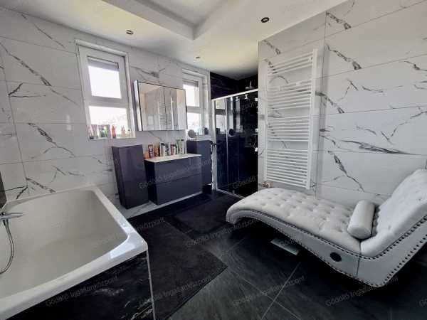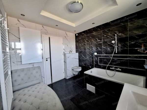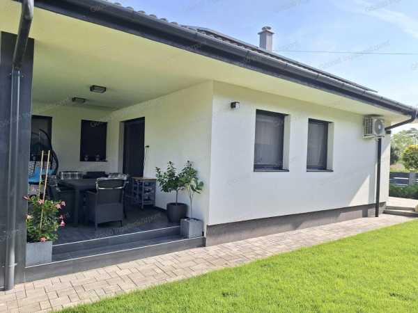Erdőkertes új építésű házakkal beépített részén, nagyon jó környéken, egyedi tervek alapján, magas műszaki tartalommal épült, extrákkal felszerelt, egyszerűen vezérelhető nappali + 3 szobás okos otthon eladó! A 155nm-es házban előszoba, teraszkapcsolatos nappali-konyha-étkező, közlekedő, 3 normál méretű szoba, teljesen felszerelt tágas fürdőszoba, vendégmosdó, háztartási helyiség és két autó beállására alkalmas, 31nm-es fűthető garázs lett kialakítva. Az ingatlan 2020-ban épült, színezett alumínium csatornarendszerrel, 3 réteg hőszigetelt üvegezésű műanyag nyílászárókkal (+szúnyoghálókkal, redőnyökkel), AH típusú biztonsági bejárattal, egyedi Porta beltéri ajtókkal, Rimessa dupla garázskapuval, 12cm homlokzati és 20cm vastag mennyezeti szigeteléssel. Intelligens otthon, a Somfy IO vezeték nélküli technológiája rádiós kapcsolaton át vezérli a ház szinte minden területét. Extraként Honeywell típusú vízszűrő, 3 fázisú Wallbe elektromos autótöltő, mozgásérzékelő riasztó és kamerarendszer is rendelkezésre áll. Fűtéséről Immergas kondenzációs gázkazán gondoskodik radiátorokkal, ill. a nappaliban elektromos kandalló és az étkezőben egy 3,5kw-os Hitachi inverteres split klíma és is megtalálható. Az áramellátás jelentős részét 7.5 kW napelem rendszer biztosítja így a villanyszámla minimális. A 834nm-es telek szépen parkosított, egy része térkövezett. Folyamatos gondozását, karbantartását locsoló almérőre kötött automata öntözőrendszer valamint robot fűnyíró segíti. Hátsó felében 9nm-es tároló és fa kerti játszótér kapott helyet. Parkolás a garázsban és az udvarban is lehetséges, telefonról minden kényelmesen vezérelhető! Irányár: 155Mft Hivatkozási szám: 2517891. Megtekinthető telefonos időpont egyeztetés alapján: Pintér Roland +36 20 539-1988 pinterroland@godolloi.hu GÖDÖLLŐ INGATLANKÖZPONT - www.godolloi.hu: Gödöllő és környéke legnagyobb ingatlan választéka /Gödöllő, Szada, Veresegyház, Kistarcsa, Kerepes, Erdőkertes/ eladó-kiadó családi ház, telek, lakás! Ingatlan építés és felújítás!