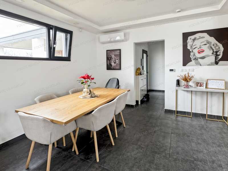 Fontos önnek a MODERN FORMAVILÁG, a MAGAS MŰSZAKI FELSZERELTSÉG és egy JÓ LAKÓKÖZÖSSÉG? Nem szeretne egyikről sem lemondani? Nem is kell! Tekintse meg kiemelt ajánlatunkat! Költözzön Kecskemét közkedvelt, családbarát városrészébe: Kadafalvára, a MOGYORÓ LAKÓKERTBE! A KÖRNYEZET JELLEMZŐI: - önálló aszfaltos utca, fiatal építésű házakkal - 4 házból álló zárt lakóközösség, önálló bejáróval, elektromos kapuval - 900 m2 parkosított telek, automata öntözőrendszerrel. A HÁZ FŐBB JELLEMZŐI: - 102 m2 lakrész, nappali + 3 szoba, kamra, háztartási helyiség, dupla fürdő + különálló wc - 11,7 m2 hideg burkolat, fedett terasz - 3,22 m2 fedett belépő - 21 m2 térkövezett, fedett gépkocsi beálló. AZ ÉPÜLET JELLEMZŐI: - 10 kW napelem, inverterrel - 2019-ben épült, ÉMI minősítésű könnyűszerkezetes falazat, extra tetőszigeteléssel - elektromos fűtés, helyiségenként programozható termosztáttal - hőszivattyús hűtő-fűtő, wifis klímák - Airvent ipari szellőztető gép, programozható vezérléssel - antracit színű, 6 légkamrás, 3 rétegű, kimagasló hő és zajcsillapítású műanyag ablakok, alumínium külső párkányokkal - kültéri elektromos zsaluziák, okos otthon vezérléssel - dupla fürdő, különálló wc - CPL fóliás ajtók - Legrand kapcsolók, konnektorok + EXTRA elektromos csatlakozók - napelemes rendszernek előkészítve , (H tarifa ) - minőségi beltéri burkolatok + vörösfenyő külső díszburkolatok - LED-es lámpatestek - egyedi konyhabútor beépített Electrolux gépekkel - minden helyiségben kábeles internet csatlakozás - Paradox riasztórendszer internetes modullal - 4 zónás automata öntözőrendszer - térkövezett, fedett gépkocsi beálló - 11,7 m2 nagyságú, fedett terasz - 30 nm szigetelt melléképület villannyal, fűtéssel További információkért és a megtekintés érdekében hívjon bátran! Az ingatlan kizárólag előzetes irodai egyeztetést követően, értékesítővel tekinthető meg! FOCUS INGATLAN – Veled a középpontban!
