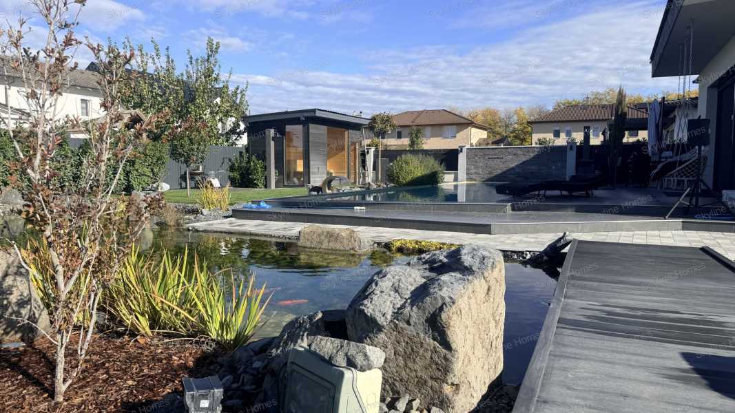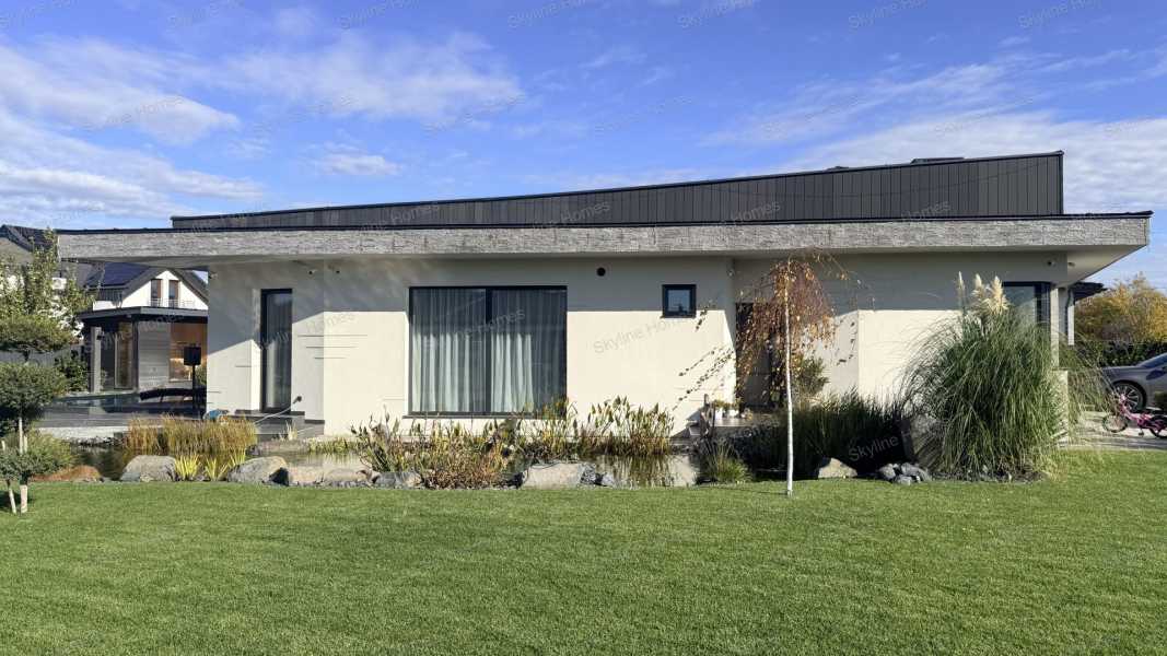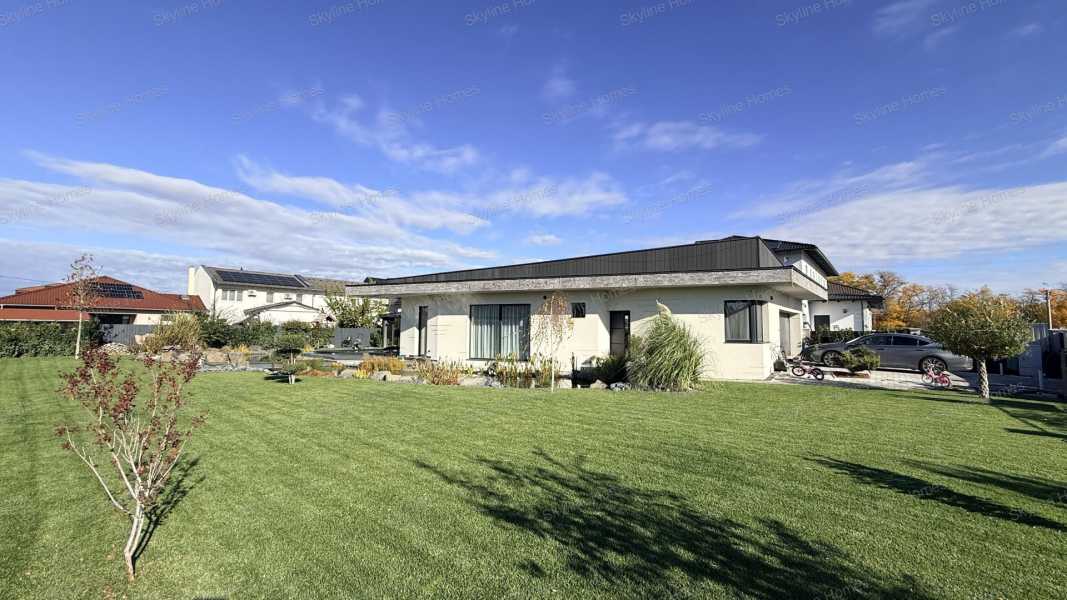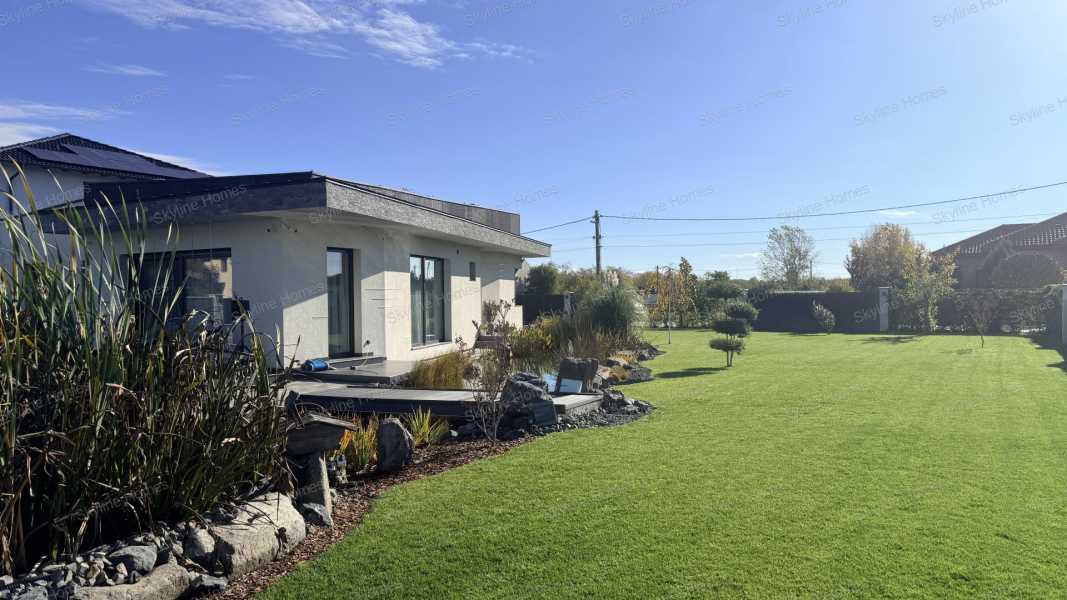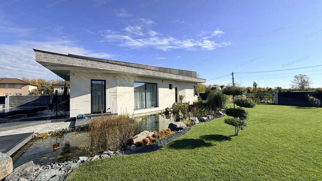 Dunaharasztin, csendes, átmenő forgalomtól mentes utcában, dupla telken épült, modern, prémium műszaki tartalommal rendelkező családi ház keresi új tulajdonosát! A 2024-ben épült ingatlan 30-as téglából készült, 15 cm homlokzati szigeteléssel, a födémen 45 cm vastag gyapotszigetelés biztosítja a kiváló energiahatékonyságot. A háromrétegű nyílászárók és a 12,5 kW-os napelemes rendszer rendkívül alacsony fenntartási költségeket garantálnak. A fűtés-hűtés korszerű hőszivattyús mennyezeti és padló rendszerrel megoldott, amely egész évben egyenletes, komfortos hőérzetet biztosít. Az otthon valódi okos házként működik: elektromos redőnyök telefonról vezérelhető hangulatvilágítás kívül-belül távfelügyeletre kötött riasztórendszer teljes kamerarendszer A házat a tulajdonos saját kivitelezésben építette, minden részletnél a prémium minőség és a hosszú távú megbízhatóság volt a fő szempont. Helyiségek: 3 kényelmes hálószoba 2 fürdőszoba tágas, napfényes amerikai konyhás nappali gardrób mosókonyha dupla beállásos garázs A parkosított kert igazi pihenőoázis: halastó több száz hallal, fűtött, épített medence, valamint szauna biztosítja a mindennapi wellness élményt. Ideális választás családok számára, hiszen iskola, óvoda és bevásárlási lehetőségek pár percen belül elérhetők. A hirdetéshez virtuális séta is tartozik, így online is bejárható az ingatlan. Személyes megtekintéshez keressen bizalommal – akár hétvégén is!