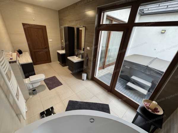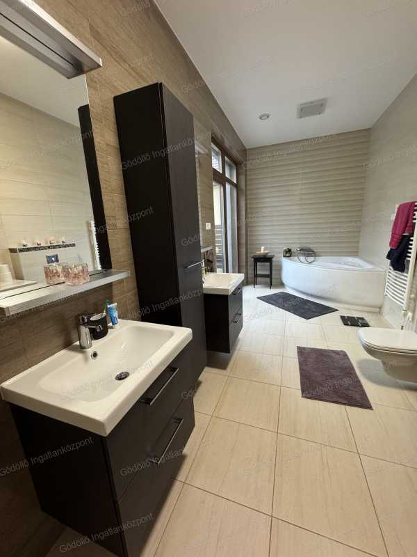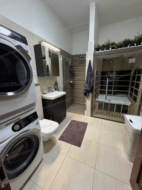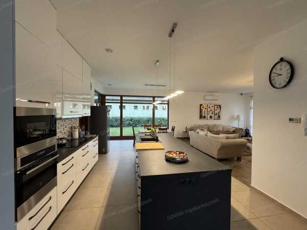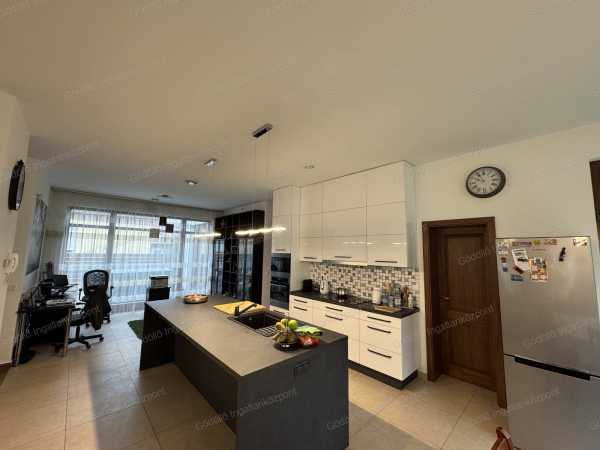 Gödöllő központi részén, csendes nyugodt utcában, saját részre, minimál stílusban épített, prémium kategóriás, nappali + 3 szobás, akadálymentesített családi ház teljes berendezéssel együtt, újszerű állapotban eladó! A 196nm-es ingatlan 2018-ban épült, 3 méteres belmagassággal, 30-as porotherm klíma tégla falazattal, 12cm vastag dryvit szigeteléssel, antracit színű cserépfedéssel, egyedi külső-belső fa nyílászárókkal, időjáráskövető programozható alu redőnyökkel. Kiváló elosztással rendelkezik, előszoba, amerikai konyhás-étkezős nappali dolgozósarokkal, kamra, közlekedő, 3 kényelmes méretű szoba, gardrób, vendégmosdó, két fürdőszoba szaunával és jakuzzival, valamint 23,4nm-es garázs is ki lett alakítva a házban. A nappali, az egyik szoba és a fürdőszoba teraszkapcsolatos. Fenntartási költsége alacsony, 8KW-os napelemmel, klímával felszerelt. Fűtéséről korszerű kondenzációs kazán gondoskodik radiátorokkal és padlófűtéssel, ill. a nappaliban kandalló is megtalálható. (Gázszámla 24.000.-Ft/hó, villanyszámla nincs). A folyamatosan tiszta, friss levegőt szellőztetőrendszer, a vízkőmentes vizet vízlágyító berendezés biztosítja. 850nm-es szépen parkosított telek tartozik a házhoz, a gyep nyírását automata fűnyíró, a növények gondozását automata locsoló berendezés segíti. Az utcafronton gondozásmentes alukerítés van kiépítve, a bejárati kapuk és a garázskapu távirányítóval vezérelhetők, az épület védelmet riasztó látja el. Központi elhelyezkedésének köszönhetően, minden percek alatt, akár gyalog is könnyen elérhető! Ingatlan beszámítás szóba jöhet! Az ár tartalmazza: - nappali teljes bútorzatát (2,5Mft), - a konyhabútort, szigettel, gépekkel, - Wellis jakuzzit, infraszaunát, - terasz berendezését (600Eft), kamodo grillezővel (1Mft), - a hálószobában az állítható ágyat, Tv-t (1Mft), - beépített bútorokat, lámpákat. Irányár: 800 000 euro Hivatkozási szám: 2517945. Megtekinthető telefonos időpont egyeztetés alapján: Sápi Tamás +36 20 944-7025 sapitamas@godolloi.hu GÖDÖLLŐ INGATLANKÖZPONT - www.godolloi.hu: Gödöllő és környéke legnagyobb ingatlan választéka /Gödöllő, Szada, Veresegyház, Kistarcsa, Kerepes, Erdőkertes/ eladó-kiadó családi ház, telek, lakás! Ingatlan építés és felújítás!