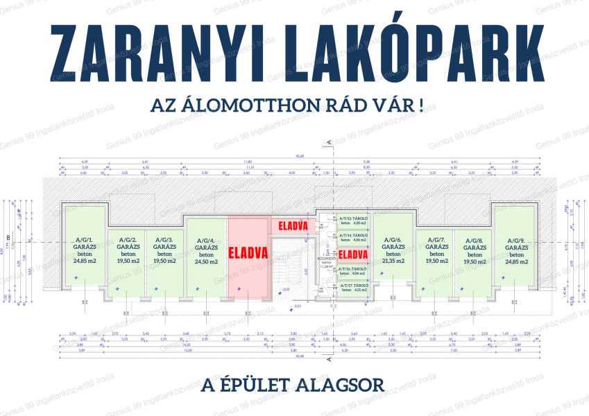 Kaposvár exkluzív lakóparkjában újépítésű társasház alatti garázs eladó ! Most lehetősége nyílik arra, hogy az elsők között vásároljon a város legmodernebb és legbiztonságosabb zárt lakóparkjába, a Zaranyi lakóparkban található saját zárható tárolót, amely Kaposvár központjához közel, mégis nyugodt, zöldövezeti környezetben helyezkedik el. A kínált ingatlan az A épület Alagsor 13. számú tárolója, amely 4,20 m²-es alapterületű, mely önálló helyrajzi számmal rendelkezik. A tárolók tervezésénél a maximális komfortot helyezte előtérbe: A tároló simitott beton aljzattal kerülnek kialakításra, valamint minden tároló saját almérő villanyórával rendelkezik, ezáltal még jobban lehet kihasználni a tároló kapacitását. Ha Ön is egy új és modern lakóparkban szeretne saját zárható tárolót vásárolni, akkor a Zaranyi Lakópark ezt is biztosítja az Ön számára. Ne hagyja ki ezt a lehetőséget! További információk, illetve és bővebb felvilágosítás igénye esetén, a lakások kizárólagos értékesítési partnere Oláh Miklós várja megkeresését a +36 30 256 2334 telefonszámon, illetve az info@genius99.hu e-mail címen. Ár.: Bruttó 1.984.500.- Ft Érd: +36302562334 https://genius99.hu/ingatlanok/6707019/ Azonosító: A/T/13 A weboldalon szereplő információk (képek, szövegek ... stb.) teljes mértékben a szerző jogi tulajdonát képezik. A weboldalon szereplő információkat, adatokat másolni, felhasználni csak a szerző előzetes engedélyével lehetséges. A tévedés, árváltoztatás és elírás jogát előzetes tájékoztatás nélkül fenntartjuk!