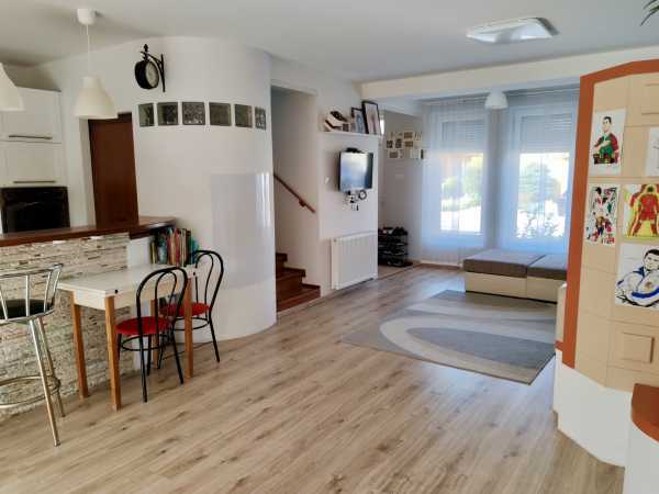 Tisztelt Érdeklődő! Szombathely kedvelt városrészén, Zanaton eladó egy kiváló állapotú, két szintes, modern lakás saját kerttel és garázzsal! Ha csendes, családbarát környezetben keresed új otthonodat, ahol minden könnyen elérhető, mégis nyugalom és biztonság vár, akkor ez a lakás tökéletes választás. Itt a városi kényelem és a kertvárosi életérzés találkozik. Főbb jellemzők: -2005-ben épült, folyamatosan karbantartott, újszerű műszaki és esztétikai állapot -76 m lakótér, praktikus, két szintes elrendezés -Alsó szint: világos nappaliétkező, modern konyha, spejz, külön WC -Emelet: 2 hálószoba + gardrób (akár 3. szoba is kialakítható), fürdőszoba WC-vel -Fűtés: gázkazán + cserépkályha + padlófűtés alacsony rezsivel, kellemes hőérzettel -Parkolás: saját, zárható garázs + további beállóhely a ház előtt -Energetikai besorolás: D kedvező, takarékos fenntartás Saját kert és hangulat: -A lakáshoz tartozik egy saját, gondozott kert, amely valódi kis privát pihenőhely -Ideális családi grillezéshez, gyerekjátszáshoz vagy esti pihenéshez -Nyugati fekvésének köszönhetően napos, barátságos tér A környék: Zanat egy rendezett, barátságos városrész, ahol minden megtalálható pár perc sétára: bolt, busz, játszótér, óvoda, iskola, orvosi rendelő. A természet és a város közelsége egyszerre adott ideális mindenkinek, aki szeret csendben élni, mégis fontos számára a gyors elérhetőség. Kinek ajánlom: -Fiatal pároknak, akik első otthont keresnek -Családoknak, akik saját kertet és biztonságos környéket szeretnének -Idősebbeknek vagy egyedülállóknak, akik alacsony fenntartású, kényelmes otthont keresnek -Akik felújítás nélkül, azonnal költözhető, modern lakásra vágynak Várom hívását, nézzük meg közösen ezt akiváló ingatlant!