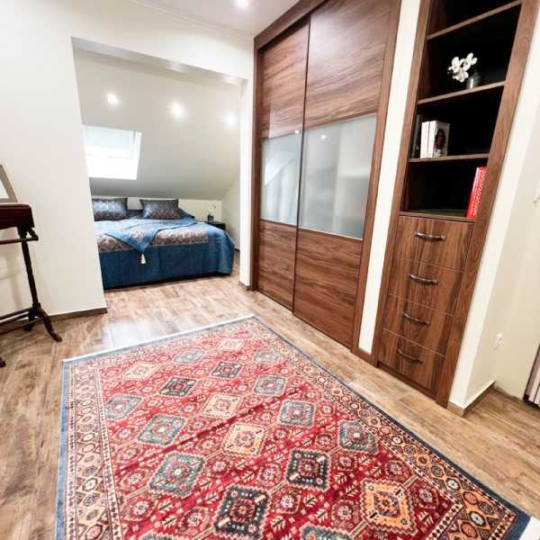 Az ingatlan közvetlenül a tulajdonostól eladó, elérhetősége: Tomada Klára 31 -- 782 -- 12 -- 63 Székesfehérvár történelmi belvárosában, az Országalmától mindössze 1 percre, közvetlenül az Árpád Fürdővel szemben 143 m²-es, 4+2 fél szobás, frissen felújított lakás + 5m² tároló helyiség együtt eladó. Főbb jellemzők: - Tágas, amerikai konyhás nappali (gránit munkalapok, cseresznyefa szekrények, professzionális elrendezés), - 5 egyéb szoba (ebből egy saját fürdővel) + még egy teljes fürdő, - natúr fenyő galéria, - 8 ablak a fő élettérben– egész nap fényes, világos, kiváló szellőzés, - Komplett gépészeti felújítás 2023-ban: 3×32 amper, 20 cm szigetelés, gázkazán, padlófűtés, 3 inverteres klíma - C energetikai besorolás - Közös költség: 11.635 Ft/hó - Rezsi: kb. 29.000 Ft/hó Parkolás: - Kedvezményes lakossági engedély (első autó 7.300 Ft/év, második 12.200 Ft/év, érvényes minden belvárosi utcára) - Bérelhető parkolóhely a közeli parkolóházban vagy a ház alatti mélygarázsban Kilátás: két templomtoronyra és a történelmi belváros háztetőire – reggeli fényben, naplementében és télen is varázslatos. Befektetőknek: - már kialakított külön bejárati ajtókkal akár két lakásra is bontható, - a galéria teljesen zárt felső szintté bővíthető, - airBnb hasznosításra is kiváló lehetőség. Költözhető: teljes vételár beérkezése után 3 héten belül. Az ingatlant havi díjas szolgáltatásunk keretében hirdetjük, ön közvetlenül a tulajdonossal tárgyalhat.