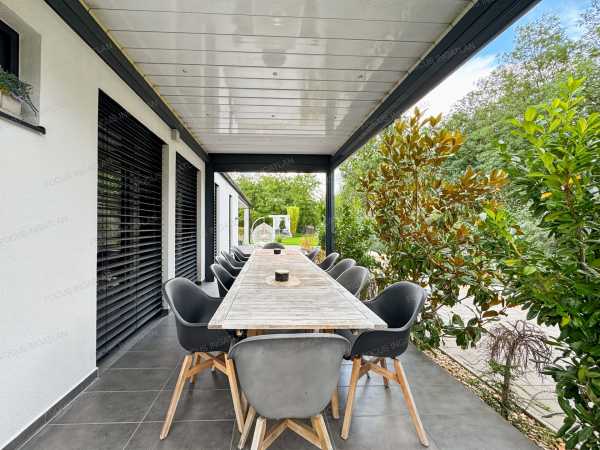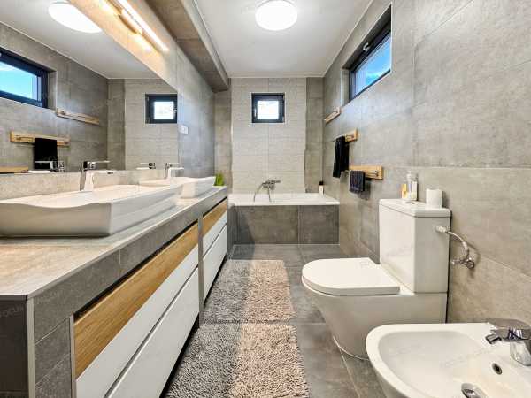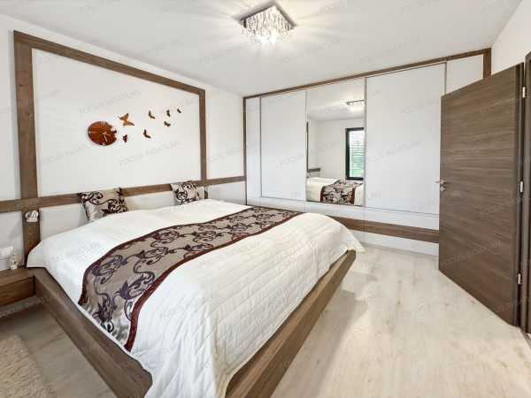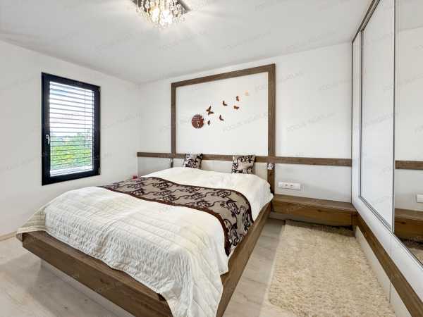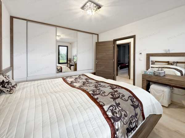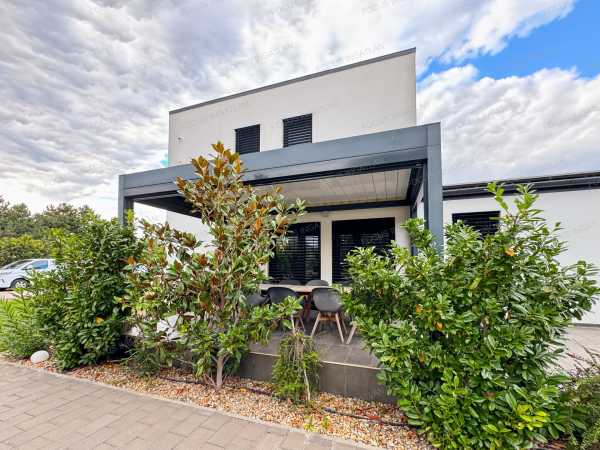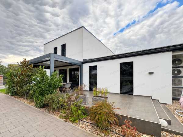 ÖNELLÁTÓ LUXUS ÉS MINIMALISTA ELEGANCIA KADAFALVÁN – 0 FT REZSI, 100% KÉNYELEM Kecskemét-Kadafalva legkeresettebb részén, a zárt és exkluzív Mogyoró Lakóparkban eladó egy minden igényt kielégítő, 2019-ben épült, prémium kategóriás családi ház. Ha Ön nem köt kompromisszumot a minőség, a modern technológia és a nyugalom terén, akkor megtalálta új otthonát. Ez az ingatlan nem csak egy ház, hanem egy életérzés: a jövő technológiája találkozik a természtközeli nyugalommal. AZ OTTHON LELKE – TÉRHATÁS ÉS DESIGN A belső kétszintes épület elrendezése a modern családi igényekre lett szabva. Földszint: A tágas, napfényben úszó amerikai konyhás nappali és étkező a ház központja, mely közvetlen kapcsolatot ápol a terasszal. Itt található továbbá egy szülői háló gardróbbal, egy praktikus háztartási helyiség, kamra és a vendég WC. Emelet: A privát szféra, ahol további kényelmes hálószobák és egy luxus színvonalú fürdőszoba kapott helyet. Konyha: A háziasszonyok álma – egyedi tervezésű, magasfényű bútorzat, beépített prémium Electrolux gépekkel és konyhaszigettel. FENNTARTHATÓSÁG ÉS TECHNOLÓGIA – A JÖVŐ OTTHONA Felejtse el a rezsiszámlákat! Az ingatlan energetikája és gépészete a piacon elérhető legmagasabb színvonalat képviseli: Energetika: Hatalmas teljesítményű, 20 kW-os napelemrendszer (inverterrel) biztosítja a teljes villamosenergia-ellátást, így a ház gyakorlatilag önellátó. Fűtés/Hűtés: Helyiségenként vezérelhető elektromos fűtés, kiegészítve Wifi-s hőszivattyús hűtő-fűtő klímákkal. Szellőzés: Airvent ipari szellőztetőrendszer gondoskodik a folyamatosan friss, szűrt levegőről ablaknyitás nélkül is. Okosotthon: A kültéri elektromos zsaluziák és a gépészet is központilag, telefonról vezérelhető. KÜLTÉR ÉS KIKAPCSOLÓDÁS A 900 m²-es, parkosított telek a nyugalom szigete. Wellness-élmény: A teraszon egy 15 m²-es, motoros vezérlésű bioklimatikus pergola teszi lehetővé a kinti pihenést bármilyen időjárásban. Kert: Automata, 4 zónás öntözőrendszer (fúrt kútról), dísztó, érett növényzet és hangulatos térkövezés. Parkolás: A ház része egy fűthető, 56 m²-es dupla garázs, valamint egy fedett kocsibeálló is rendelkezésre áll. EXKLUZÍV EXTRÁK Antracit, 3 rétegű üvegezésű nyílászárók alumínium párkánnyal. Prémium hideg- és melegburkolatok, vörösfenyő díszburkolatok a homlokzaton. Paradox riasztórendszer internetes modullal, kábeles net minden helyiségben. Dupla fürdőszoba, 3 WC, 2 bidé – a reggeli csúcsidő kényelméért. Beépített egyedi bútorok (árban foglaltatnak!). KÖRNYEZET A Mogyoró Lakópark egy 4 házból álló, zárt közösség saját aszfaltozott úttal és elektromos kapuval. Itt a gyerekek biztonságban játszhatnak, Ön pedig élvezheti a csendet, miközben Kecskemét belvárosa és az autópálya is percek alatt elérhető. Hívjon bizalommal, és szeressen bele személyesen! (Kizárólag előzetes egyeztetés után tekinthető meg.)