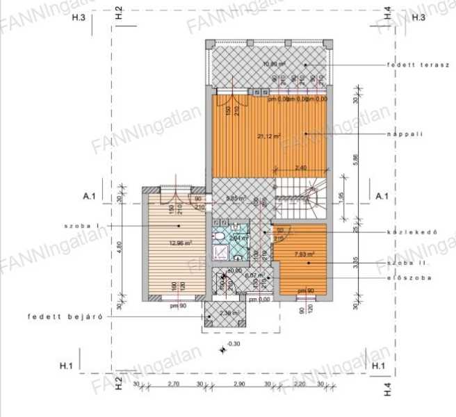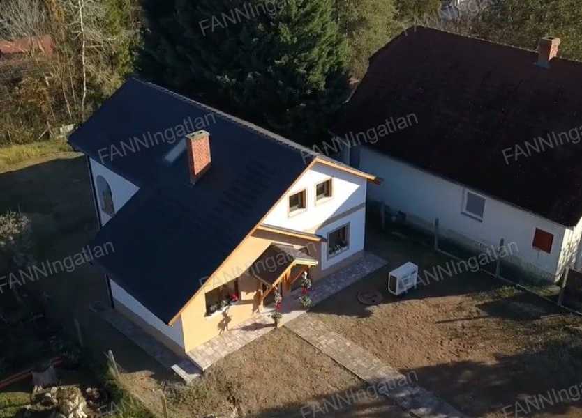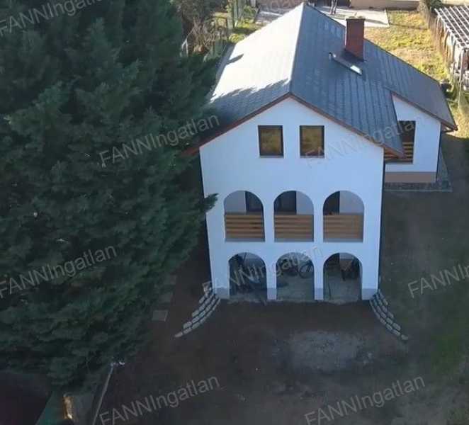 Eladó 2022-ben épült családi ház Esztergomban! Esztergom zöldövezetében, kertvárosias környezetben, mégis a belvároshoz közel, eladó egy 922 m2 területű telken fekvő, 3 szintes, összesen nettó 118 m2, bruttó 141 m2 területű családi ház. A ház ugyan 3 szintes, de a szinteltolásnak köszönhetően kényelmes elosztású. A földszinten (56,87 m2) előtér, fürdőszoba, háztartási helyiség, valamint nappali került kialakításra. A nappaliból egy 10,8 m2 területű erkély nyílik, mely a hátsó udvar felé néz, panorámás kilátással. A tetőtérben (n.33,9 m2, br.56,78 m2) kettő hálószoba, egy gardrób és egy fürdőszoba található. A nappaliból nyíló lépcsőházban közelíthető meg a konyha a legalsó szinten (26,96 m2), ahol helyet kapott egy kamra, valamint a tervek szerint egy külön wc helyiség került volna kialakításra, mely félbe maradt, de igény szerint befejezhető. A ház téglából épült, külső 15 cm grafitszigetelést kapott. A nyílászárók 3 rétegű üveggel ellátottak. A tető 25 cm szigetelést és cserép fedést kapott. A korszerű fűtésről hőszivattyús fűtés, fan-coil rendszer, valamint padlófűtés gondoskodik. A vízellátás fúrt kútról működik, a melegvizet pedig a hőszivattyú biztosítja. A rezsije kedvező. Közelben, kb. 10 perc sétára található egy horgásztó, valamint étterem. Buszmegálló kb. 5 perc autóútra található, a belváros pedig kb. 10 perc alatt megközelíthető autóval. Az ingatlanvásárláshoz szükséges teljeskörű ügyintézéssel állok rendelkezésre!