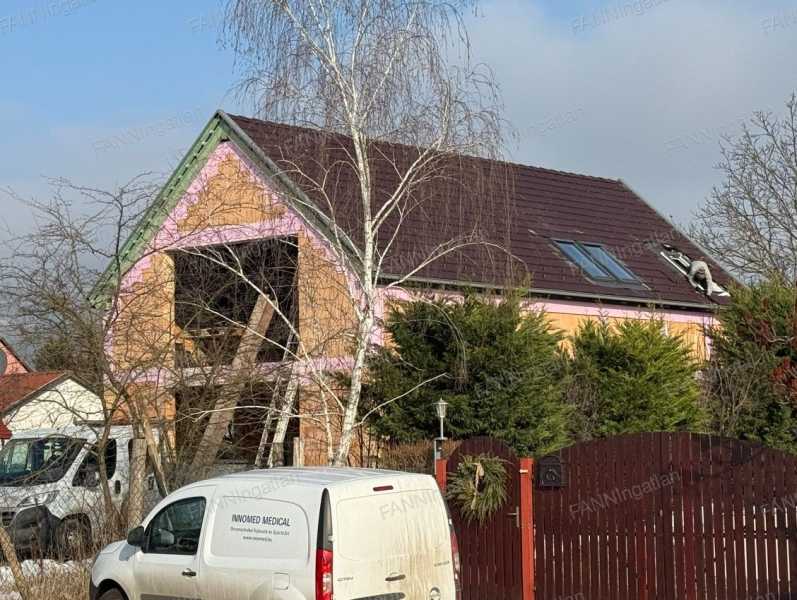Eladó új építésű családi ház Esztergomban! Esztergom zöldövezetében, kertvárosias környezetben, mégis a belvároshoz közel, a Dunától 15 perc sétányira, a Csenkei hídnál eladó egy – jelenleg még építés alatt álló – új építésű családi ház, a hozzá tartozó 671 m2 területű telekkel. A ház két szintes, mindösszesen 135 m2 alapterületű. A földszinten (80,07 m2) előtér, fürdőszoba, háztartási helyiség, kamra, konyha-étkező, közlekedő, nappali, hálószoba, valamint lépcsőház kerül kialakításra, míg a tetőtérben (55,83 m2) 2 db fürdőszoba, 4 db hálószoba, illetve egy közlekedő. A földszinten egy 22,60 m2 területű terasz is helyet kap. A ház jelenleg 40%-os készültségi szinten áll. Közművek közül vezetékes víz-, villany-, valamint csatornahálózat is megtalálható. A ház fő falai LEIERTHERM 30 N+F téglából, a válaszfalai LEIERTHERM 10 N+F téglából épültek, a tetőt Terrán Zenit beton tetőcserép fedi. A külső nyílászárók Fehér színű műanyag bukó-nyíló ablakok lesznek, 3 rétegű üvegezéssel, kívül fehér 5 légkamrás PVC párkánnyal. A bejárati ajtó 5 ponton záródó, hőszigetelt ajtó lesz. A padló lépésálló AUSTROTHERM AT-N100 hőszigetelést kap 12 cm vastagságban. A lábazatra 15 cm XPS zártcellás hőszigetelés kerül. A külső főfalak előtt 15 cm AUSTROTHERM AT-H80 EPS, vagy 10 cm AUSTROHERM Top 30 SF XPS hőszigetelés készül. A tetőszerkezetbe 15+5 cm ROCKWOOL Airrock LD hőszigetelés kerül. A ház fűtéséről a tervek szerint 16 kw-os hőszivattyús fűtésrendszer, padlófűtés, fan-coil központi hűtő-fűtőrendszer fog gondoskodni. A ház vételára a készültségi fokozatától függ; - 1. fűtéskész állapotban 962.963.- Ft/m2, tehát 130 M Ft, - 2. kulcsrakész állapotban, szerelvények nélkül 1.111.111.- Ft/m2, tehát 150 M Ft, - 3. kulcsrakész állapotban, szerelvényekkel együtt 1.500.000.- Ft/m2, tehát 202,5 M Ft. 1. Fűtéskész állapot: nem tartalmazza a beltéri nyílászárókat, burkolatokat, szanitereket, csaptelepeket, lámpatesteket, festést, kerítést, bejáró térkövezését. 2. Kulcsrakész állapot szerelvények nélkül: nem tartalmazza a lámpatesteket, kerítést, bejáró térkövezését (térkövezéshez előkészítést igen). 3. Kulcsrakész állapot szerelvényekkel: szó szerinti kulcsrakész állapot (beépített bútorok kivételével), csak költözni szükséges. A kulcsrakész állapot az eladó által meghatározott árkategóriába tartozó burkolatokkal, szaniterekkel, lámpatestekkel értendő, azonban ettől felár ellenében igény esetén lehetőség van eltérni. A közelben található buszmegálló, a belváros busszal 10, autóval 5 perc alatt elérhető. A Duna-part gyalog kb. 15 perc alatt elérhető, itt bicikliút vezet a belvárosba. Az ingatlanvásárláshoz szükséges teljeskörű ügyintézéssel állok rendelkezésre!
