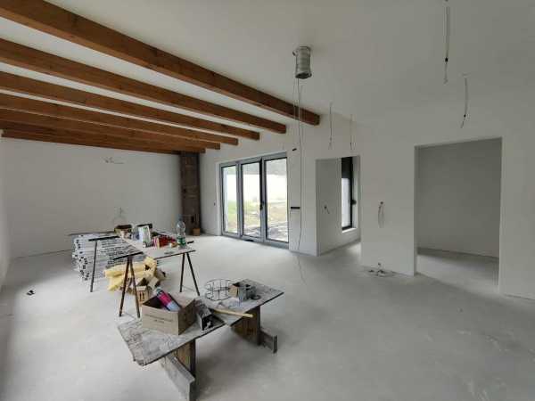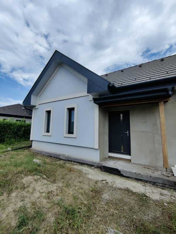 Megvételre kínálok Esztergom északi városrészén egy új építésű családi házat. A 605 nm-es összközműves telek a Külső Bánomi útról nyílik. A könnyűszerkezetes épületet tulajdonosai az elmúlt években kezdték építeni, jelenleg kb 80%-os készültségi szinten van, ebben az állapotában eladó. A festés, a szaniterek, kapcsolók, világítótestek kiválasztása a leendő tulajdonosra vár. A minőségi SPC padlóburkolat illetve a gázkazán már beszerzésre került, eredeti csomagolásban várja, hogy felhasználják, a vételár részét képezi. A lakóház bruttó alapterülete 140nm, a hasznos alapterület 118 nm. Az ingatlan egy szintes, akadálymentes, a tervezés során nagy gondot fordítottak a helykihasználásra. Az előtérből balra található egy mosókonyha, mögötte speiz, mellette a tágas konyha-étkező-nappali, melynek ajtaja a hátsó teraszra nyílik. A terasz lefedésével további hasznos pihenőteret nyerhetünk. A nappali menyezetén kialakított mutatós gerendázat remekül ötvözi a hagyományos stílust a modern megjelenéssel. A folyosón végighaladva kettő gyerekszoba, egy szülői háló gardróbbal és egy nagy méretű fürdőszoba került kialakításra. Utóbbi helyiségbe zuhanyzót és kádat is terveztek. A falakban 15 cm fújt cellulóz szigetelés, a külső falon 15 cm dryvit szigetelés van. A bejárat körüli homlokzati részt az új tulajdonosok ízlésük szerint fa-, vagy kőburkolattal díszíthetik. A helyiségenként szabályozható padlófűtés gázkazánról üzemeltethető, mely meleg vizet is hivatott szolgáltatni, kettő db hűtő-fűtő klímának van kiállása, illetve a nappali sarkába tervezett kandalló kéményét is beállították. A nyílászárók műanyagból készültek, szúnyoghálóval, szigetelt alumínium redőnnyel felszereltek. Igény esetén a tetőtér is beépíthető, melynek során további 70-80 nm hasznos lakótér nyerhető. Az ingatlan per-, teher-, és igénymentes, a vételár kiegyenlítését követően azonnal birtokba vehető. Ajánlom összeköltözőknek, gyermekes családoknak, idősebb pároknak egyaránt. A közelben óvoda, általános-, és középiskola, játszótér, Lidl, Pepco, orvosi rendelő, gyógyszertár, kutyafuttató, benzinkút, dohánybolt, buszmegálló található, minden, amire a hétköznapi életben szükség lehet. A városközpont néhány perc alatt elérhető. Amennyiben hirdetésem felkeltette érdeklődését, vagy bővebb információra van szüksége, hívjon a megadott számon telefonon vagy WhatsAppon. Az ingatlan előzetes időpont egyeztetés után a hét bármely napján megtekinthető. Irodánk teljes körű jogi háttérrel áll ügyfelei rendelkezésére.