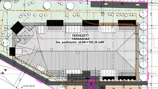 Befektetőknek ajánlom Oroszlány belterületén az alábbi projektet Az Alapitó kizárólagos tulajdonában áll az oroszlányi kivett, beépítetlen terület mindösszesen 1660 nm területű belterületi ingatlan. Az Alapító a fent megjelölt ingatlanon az építési engedélyezési eljárás alapjául szolgaló engedélyezési tervrajzok szerint épülő 22 lakásos, valamint 5 udvari beallót társasházzá alakitja . A komplett projekt rendelkezik: -építészeti,épületgépészeti,épületvillamossági,gázterv,közmű,csapadék-és szennyvíz terv -mérési tervek,tartószerkezeti terv,/fsz.,emelet,lépcsőterv,födém/ -tűzvédelem,villámvédelem -társasház tulajdont alapító előzetes alapítás - építési engedély végzés -kiviteli tervek -elhelyezkedés : Alkotmány utca Ízelítésül néhány fotó a tervezett projektből. Ár: netto 55 M Ft A teljes dokumentáció irodánkban elérhető Kérdés esetén várom hívását.