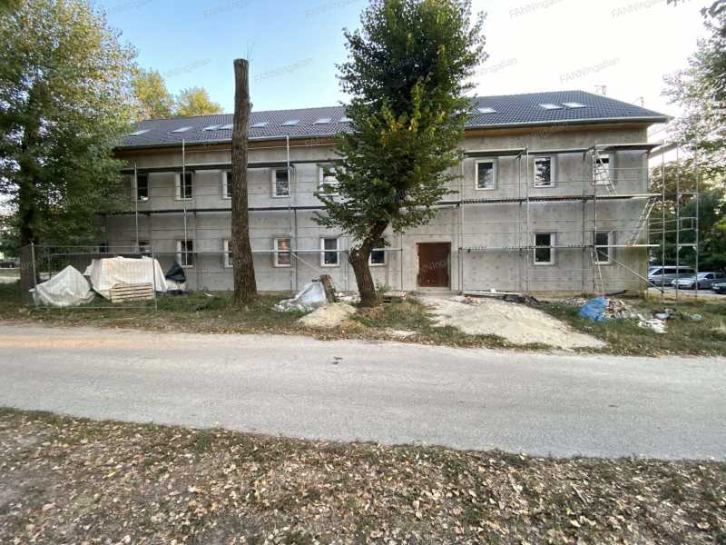 Eladó befejezésre váró 14 lakásos társasház! Esztergom-kertvárosban, társasházi övezetben eladó egy befejezésre váró, 1361 m2 területű telken fekvő 800 m2 összterületű 14 lakásos tégla építésű társasház. Az épület 3 szintes, a lakások egyenként 50-60 m2 területűek, 2 szobásak. A tetőt betoncserép fedi, az elektromos hálózat új, a válaszfalak már kialakításra kerültek. A terület alkalmas parkolók, játszótér, udvar kialakítására. Közvetlen közelben található buszmegálló és bevásárlási lehetőség.