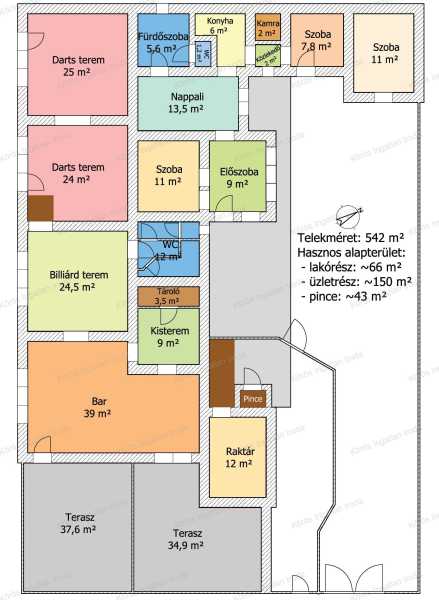 Szarvason a 44-es főút mellett tekintélyes épület eladó! Az ingatlan társasházként nyilvántartott, bármilyen tevékenységre hasznosítható épület. Stabil, masszív sziklás lábazat emeli ki a járdaszinttől, falazata tömör nagyméretű téglából kötéssel épített (45cm vastag), héjazata cserép. Födémszerkezete betongerenda, és kőzetgyapot. A főépület alatt lévő 42nm-es pince kibetonozott, száraz, aljzata hidegburkolattal ellátott, falazata lambériával és Flintstone kővel díszített. Évtizedes vendéglátó múltra visszatekintő ingatlan statikailag, esztétikailag kimondottan jó állapotú, összkomfortos, összközműves. Bejáratánál 72nm-es fedett terasz fogad, melynek fele téliesített. A vendégtér mellett biliárd szoba, és 2x3 pályás darts versenyekre kialakított helyiség található. A kiszolgáló pult mögött raktár, kazánház foglal helyet, és természetesen a férfi-női-személyzeti vizesblokk és az öltöző is rendelkezésre áll. Ennek az utcafronti elhelyezkedésű épületrésznek a hasznos négyzetmétere 150nm + a 72nm-es terasz. Kombi gázkazán, vegyes tüzelésű kazán, és klímák biztosítják a fűtést, a hűtést, és a melegvizet. Aljzata mindenhol hidegburkolattal ellátott, falazata festett, csempés, illetve lambériás. A külön bejáratú összkomfortos 66nm-es lakásba, és a 43nm-es pincébe az épület mögötti udvar felől juthatunk be. Rendezett, részben felújított, jó állapotú épületrész lakásként funkcionál. Belső udvarában is fedett terasz (~37nm-es) szolgálja kényelmünket. Számos lehetőséget nyújt az ingatlan robusztus mérete, sarki elhelyezkedése, közvetlen parkolási lehetősége. Könnyen megközelíthető, bármilyen üzleti, gastro, szépségipar tevékenységre, de családi házként átalakítva is kiváló a lokáció! Szarvas város Békés megye nyugati részén, a történelmi Magyarország földrajzi középpontján fekszik. Egyrészt a Hármas-Körös Kákafoki-holtága, továbbá a Mini Magyarország Makettpark, az Arborétum, a Szarvasi Vizi Színház, és még számos látnivaló fogadja az idelátogató turistákat. Két felsőfokú intézmény üzemel városunkban, Gál Ferenc Egyetem Pedagógiai Kar, és a Szent István Campus (MATE). Budapest-Kecskemét-Gyula vonalán, a 44-es főútról, vagy az M44-es autóútról közvetlen lehajtóval rendelkezik. Az ingatlan per,-teher,-igény mentes! Bővebb információért kérem keressen! Az ingatlanról, a hirdetésekben szereplő információk a megbízótól kapott adatok alapján készítettük, irodánk azokért felelősséget nem vállal!