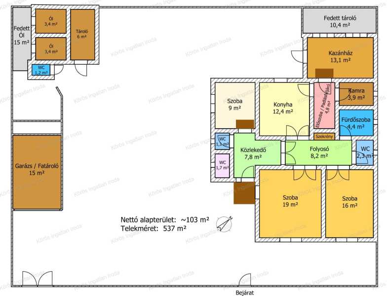 Békésszentandráson a strandtól 150m-re családi ház eladó! Szeretnél nyugodt, biztonságos, jól infrastruktúrával rendelkező községben élni? Itt a helyed! Békés megye nyugati kapujában elhelyezkedő települést a Kákafoki-holtág öleli körbe. Sokak számára ismert turisztikai célpont, a nyaralók, a horgászok egyik kedvenc üdülőhelye. Az eladásra kínált előkertes családi ház a vízparttól 150m-re helyezkedik el, aszfaltozott út mellett. 1980-ban épült beton alapra, B30-as téglából, cserép héjalással. A padlástér álló fedélszékes fenyő gerendázattal készült, a későbbi esetleges hasznos élettér kialakítására. Parapet magassága 150cm. Az idő folyamán az első bejáratnál átalakított-beépített teraszból üzleti célra alkalmas szoba, wc, tároló helyiség, váró került kialaításra. A hasznos élettér optimatizálására, a hátsó bejárati falhoz épített helyiségben kapott helyet a gáz, és vegyes kazán. Az energia fogyasztás minimalizálása érdekében történt újítások: - 10cm-es szigetelés körben + dryvitolás (szín egyéni ízlés szerint megvalósítható) - külső nyílászárók cseréje műanyag hőszigetelt üvegezésűre - klímák telepítése Az ingatlanban a helyiségekről a képek között található alaprajzból tájékozódhat. Hasznos alapterülete 90m2, + a kazánház 13m2. Kiemelt lábazatra épült, tetőtere beépíthető. A telek területe 537m2. Utcafronton beton lábazatra új lindab lemezből készült a kerítés, kis,-és nagykapuval ellátva 1,8m magasan. A nagykapuval szemben fedett, deszkából épített garázs ad otthont autójának. Az udvar füvesített, fásított, fúrt kúttal rendelkezik. Az ingatlan összkomfortos, összközműves, tehermentes! Lakhatásra, üzleti célra, befektetésre is alkalmas! Szarvastól 5km-re helyezkedik el, az Alföld legszebb fekvésű falujának tartják. A holtág mentén többszáz hétvégi ház található, így komoly idegenforgalmi jelleget kölcsönöz a településnek. Az ingatlanról, a hirdetésekben szereplő információk a megbízótól kapott adatok alapján készítettük, irodánk azokért felelősséget nem vállal.