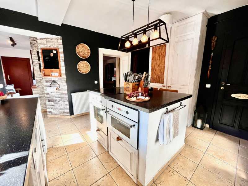 *** IGÉNYESEN KIALAKÍTOTT OTTHON SZUPER LOKÁCIÓVAL TAHITÓTFALUBAN *** A Pest vármegyei, szentendrei járáshoz tartozó TAHITÓTFALUBAN eladó egy 2010-ben minden igényt kielégítő minőségben felújított, világos, tágas nettó 112 nm-es, RÖVID HATÁRIDŐVEL KÖLTÖZHETŐ, konyha + étkezős, nappalival + 2 hálószobával, 1 fürdőszobával, +1 wc helyiséggel, pincével, udvari beállóval, plusz 48 nm-nyi terasszal, kandallóval rendelkező, 665 nm-es telken elhelyezkedő családi ház. /Tulajdoni lapon lakóház, udvar minősítésű/ A HÁZ: A 2010-ben minden igényt kielégítő minőségben felújított családi ház szerető tulajdonostól eladó. Az 665 nm-es telken téglából épült ingatlan tökéletes otthona lehet a festői településen a Duna-kanyar szívében. A készenléti melegvízről és a téli kellemes hőmérsékletről egy kombi GÁZKAZÁN gondoskodik, radiátoros hőleadással. A házban található még egy gyönyörű épített KANDALLÓ, mely amellett, hogy szemet kápráztató, méretéből adódóan kiváló alternatív fűtési lehetőség. A házat fa, gázzal töltött dupla üvegezésű nyílászárókkal szerelték fel, szintén fa teraszajtókkal és fa szerkezetű főbejárattal. Az előszobából közvetlenül a konyhába jutunk. A méretre készült vintage fehér frontokkal ellátott konyhabútor az étkezőtől külön lett kialakítva, melybe beépítésre került a sütő, az indukciós főzőlap, mosogatógép, mikro. A pult alatt lett kiépítve a mosógép kiállása is. A KONYHA közepén egy hatalmas konyhasziget lett kialakítva. A házban egy fürdőszoba lett kialakítva. A kényelmes zuhanyzós fürdőszoba mellett található külön helyiségben a wc plusz kézmosóval. A két helyiség között található a gépészet. A konyha mellett egyik irányba a gyönyörű és tágas NAPPALIba jutunk, mely nyugati tájolású. A másik irányba pedig az ÉTKEZŐ található a kandallóval egy szobában, Innen közvetlenül rálátunk a verandára is. A DOLGOZÓSZOBA köti össze a két hálószobát. A kisebb HÁLÓSZOBA most vendégszobaként funkcionál. A FŐ HÁLÓSZOBÁBAN lett kialakítva egy U alakú hatalmas gardrób. Innen egy teraszajtón keresztül közvetlenül ki tudunk jutni a kertbe. A kertben található egy mellékélület is, mely alatt egy boltíves PINCE található. A kertben található még egy hangulatos, 30nm-es SZALETLI egy kemencével a nyári sütögetésekhez. Az utcáról kényelmesen be tudunk parkolni a viakolorozott beállóra. A telek rendezett, minden oldalról körbekerített. Parkosított, minőségi növények lettek telepítve. A tetőtér deszkázott, pakolható, a pince száraz. A KÖRNYÉK: Elérhető távolságban a környéken minden megtalálható: pékség, bolt, patika, háziorvosi rendelő, gyermekorvosi rendelő, bank, bölcsőde, óvoda, iskola, posta, Kormányablak, kávézók, éttermek, üzletek, bevásárló központok, kertészet. A zöld területet keresők és a sportolni vágyók felfedezhetik a közelben fekvő számos túraútvonalat. A közelben található egy vadaspark, valamint egy botanikus kert is. KÖZLEKEDÉS: 11-es főút: 4 perc távolságra Budapest 32 perc autóval Távolsági buszmegálló 1 perc gyalogosan. Érdemes személyesen is megnézni és meggyőződni róla, hogy ez a lakás az életben még szebb, mint a képeken! H.B.