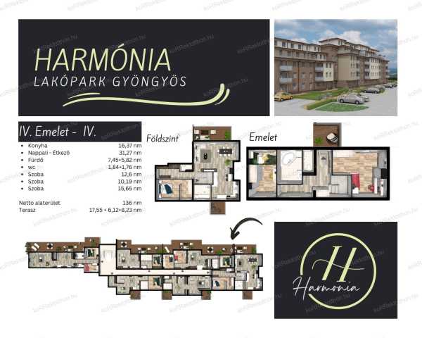 Panorámás Lakások a Deli-tó Partján – Az Ön Álomotthona! Ha mindig is egy csodás panorámával rendelkező otthonról álmodott, most valóra válthatja! A Mátra lábánál, Gyöngyös legmagasabb pontján, közvetlenül a Deli-tó partján, egyedülálló, zöldövezeti lakóparkunkat hoztuk létre, ahol a modern kivitelezés és a lenyűgöző kilátás tökéletes harmóniában találkozik. Miért válassza ezt az ingatlant? Modern kivitelezés: A legújabb építési technológiák és a tapasztalt szakemberek munkája biztosítja, hogy otthona nemcsak szép, hanem hosszú távon is kényelmes és fenntartható legyen. Panorámás lakások: Minden lakás tágas teraszokkal és csodálatos, nyugtató kilátással rendelkezik. Képzelje el, hogy reggelente a Deli-tóra nézve kezdi a napját! Nyugodt, zöld környezet: A lakópark ideális hely a kikapcsolódásra, sportolásra és gyermekek nevelésére. Mindez Gyöngyös legmagasabb pontján, a Mátra közelében, természet közvetlen közelében. Elérhető lakások: IV/1. Penthouse (97 807 000 Ft) Tágas nappali, kamra, étkező és két hálószoba 54 m²-es terasz, amely a panorámás kilátást kínál Összesen:136nm (lakás:82 m²) Fűtéskész, fürdőszoba káddal IV/2. Penthouse (108 090 600 Ft) Modern elrendezés, világos terek Két szinten elhelyezkedő, kényelmes lakás Emeleti hálószobák és fürdőszobák 15 m²-es terasz Összesen 122nm (lakás:107 m²) IV/3. Penthouse (133 282 600 Ft) Két szinten elhelyezkedő, kényelmes lakás 45 m²-es terasz a csodás kilátás mellett Összesen 120 m² IV/4. Penthouse (143 068 000 Ft) Tágas nappali, konyha, hálószobák és gardrób Két szinten elhelyezkedő, kényelmes lakás 32 m²-es terasz Összesen 136 m² IV/5. Penthouse (91 114 200 Ft) Praktikus elrendezés, három hálószoba, étkező 49 m²-es terasz Összesen 75 m² Miért érdemes most választania? Az új lakások kiváló választás mindenki számára, aki a természet közvetlen közelségében, de mégis a város kényelme mellett szeretne élni. A tágas, világos lakások mindegyike modern kialakítással és kényelmi megoldásokkal várja új lakóit. Ne hagyja ki! Tegye teljessé életét egy panorámás lakással, ahol a zöldövezeti nyugalom és a lenyűgöző táj minden nap új élményt kínál. Jöjjön el egy személyes megtekintésre, és győződjön meg róla, hogy ez az ingatlan valóban az Ön álma! TÓPARTI OTTHONOK, MÁR CSAK ÖNRE VÁRNAK!