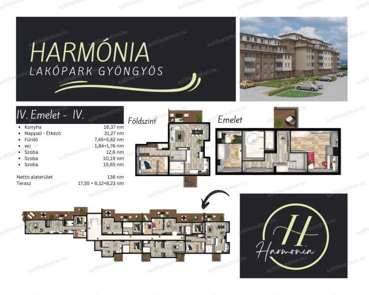 Panorámás Lakások a Deli-tó Partján – Az Ön Álomotthona! Ha mindig is egy csodás panorámával rendelkező otthonról álmodott, most valóra válthatja! A Mátra lábánál, Gyöngyös legmagasabb pontján, közvetlenül a Deli-tó partján, egyedülálló, zöldövezeti lakóparkunkat hoztuk létre, ahol a modern kivitelezés és a lenyűgöző kilátás tökéletes harmóniában találkozik. Miért válassza ezt az ingatlant? Modern kivitelezés: A legújabb építési technológiák és a tapasztalt szakemberek munkája biztosítja, hogy otthona nemcsak szép, hanem hosszú távon is kényelmes és fenntartható legyen. Panorámás lakások: Minden lakás tágas teraszokkal és csodálatos, nyugtató kilátással rendelkezik. Képzelje el, hogy reggelente a Deli-tóra nézve kezdi a napját! Nyugodt, zöld környezet: A lakópark ideális hely a kikapcsolódásra, sportolásra és gyermekek nevelésére. Mindez Gyöngyös legmagasabb pontján, a Mátra közelében, természet közvetlen közelében. Elérhető lakások: IV/1. Penthouse (97 807 000 Ft) Tágas nappali, kamra, étkező és két hálószoba 54 m²-es terasz, amely a panorámás kilátást kínál Összesen 82 m² Fűtéskész, fürdőszoba káddal IV/2. Penthouse (108 090 600 Ft) Modern elrendezés, világos terek Két szinten elhelyezkedő, kényelmes lakás Emeleti hálószobák és fürdőszobák 15 m²-es terasz Összesen 107 m² IV/3. Penthouse (133 282 600 Ft) Két szinten elhelyezkedő, kényelmes lakás 45 m²-es terasz a csodás kilátás mellett Összesen 120 m² IV/4. Penthouse (143 068 000 Ft) Tágas nappali, konyha, hálószobák és gardrób Két szinten elhelyezkedő, kényelmes lakás 32 m²-es terasz Összesen 167nm (lakás:136 m²) IV/5. Penthouse (91 114 200 Ft) Praktikus elrendezés, három hálószoba, étkező 49 m²-es terasz Összesen 75 m² Miért érdemes most választania? Az új lakások kiváló választás mindenki számára, aki a természet közvetlen közelségében, de mégis a város kényelme mellett szeretne élni. A tágas, világos lakások mindegyike modern kialakítással és kényelmi megoldásokkal várja új lakóit. Ne hagyja ki! Tegye teljessé életét egy panorámás lakással, ahol a zöldövezeti nyugalom és a lenyűgöző táj minden nap új élményt kínál. Jöjjön el egy személyes megtekintésre, és győződjön meg róla, hogy ez az ingatlan valóban az Ön álma! TÓPARTI OTTHONOK, MÁR CSAK ÖNRE VÁRNAK!