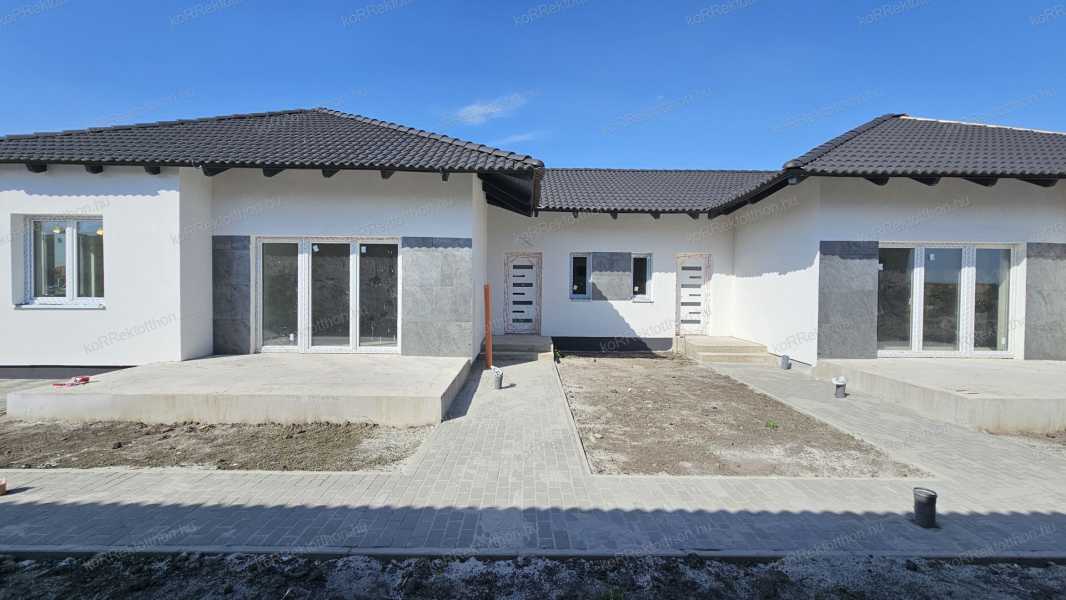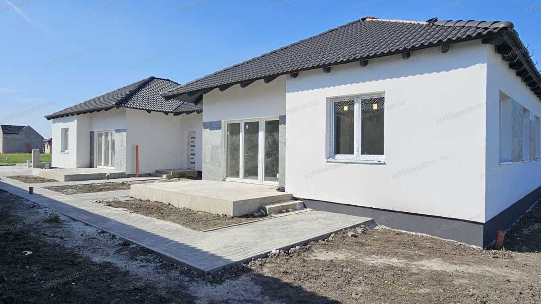 Új építésű ikerházi lakások eladók Jászberényben saját kerttel és terasszal! Ajándék klímával! Várhatóan novemberi költözéssel! Eladó 2 db modern, földszintes sorházi lakás Jászberény egyik legdinamikusabban fejlődő részén, a Szatmári Lakóparkban. Az ingatlanok egy 701 m2-es közös telken helyezkednek el, külön bejárattal, saját kertrésszel és terasszal. Lakásonkénti főbb jellemzők Hasznos alapterület: 85 m2 Terasz: 11,54 m2 (fedetlen, napos fekvésű) Lakás 1 (utcafronti): kb. 80 m2 saját kert Lakás 2 (belső udvari): kb. 200 m2 saját kert Autó beálló: mindkét lakáshoz különálló autóbeálló tartozik Közös térkő burkolatú gépkocsi beálló: kb. 70 m2 Fűtés: Az egész ingatlanban padlófűtéses rendszer hőszivattyúval (H-tarifás árammal). Melegvíz: 120 literes elektromos bojler Burkolatok: hideg- és melegburkolat választható 5000 Ft/m2 értékhatárig Homlokzat: 10 cm hőszigetelés (grafitos EPS), tört fehér vakolat Nyílászárók: 3 rétegű, műanyag szerkezetű ablakok (redőny előkészítéssel) Tető: kontyolt nyeregtető antracit színű betoncseréppel Kert: drótkerítéssel elválasztott, saját használatú kertrészek Utca fronti kerítés: Leier rendszerű, elektromos kapuval, lakásonként két távirányítóval Választható extrák és műszaki lehetőségek Egyedi burkolatok és beltéri ajtók választhatók Kádas és zuhanyzós fürdő kialakítással valósúl meg! Elektromos kiállások, kapcsolók helyének és színének szabad megválasztása Egyedi falszínek és tapéták kérhetők Redőny és riasztórendszer opcionálisan rendelhető Környezet Új, csendes lakóövezet Jászberényben Teljes közművesítés (víz, csatorna, elektromos áram, gáz) Zöldövezeti környezet, új és épülő házak szomszédságában Érdeklődés További információért és megtekintésért kérem, vegye fel a kapcsolatot elérhetőségünkön. Kiváló lehetőség új építésű, korszerű és energiatakarékos otthon megvásárlására Jászberény egyik legjobb részén.