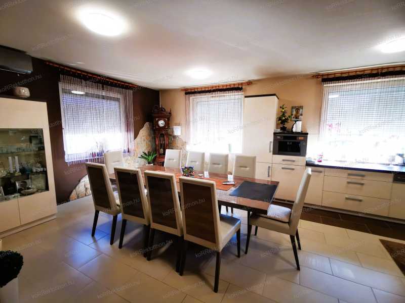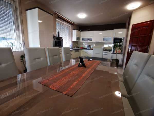 Kivételes lehetőség Jászberény kertvárosi részén! Eladásra kínálunk egy minden igényt kielégítő, 2009-ben épült, kétszintes családi házat Jászberény kedvelt, rendezett utcájában – csendes, kertvárosi környezetben, mégis közel a városközponthoz. A 100 m² hasznos alapterületű otthon mellett egy 40 m²-es, dupla beállásos garázs is helyet kapott, mely WC-vel és mosdóval felszerelt. A 450 m²-es telken gondosan kialakított holland pázsit, igényes térburkolat, valamint dísznövények, kerti kiülő teszik hangulatossá a külső udvart, amely a nyugalom valódi szigete. A parkolás az utcafronton és az udvarban is több jármű számára biztosított. A ház külső szigeteléssel, modern Westen gázkazános fűtéssel (padló- és radiátoros fűtés), valamint három darab inverteres klímaberendezéssel rendelkezik, így télen-nyáron biztosított a tökéletes hőérzet. A kiépített napelem rendszer pedig hozzájárul a gazdaságos fenntartáshoz. A földszinten: Nappali Amerikai konyha egyedi, gépesített bútorzattal (a ház ékköve!) Kamra Előszoba Fürdőszoba Az emeleten: Két hálószoba Gardróbszoba Fürdőszoba + mosókonyha Padlástároló A ház összesen 2 fürdőszobával és 3 WC-vel rendelkezik. Minden nyílászáró hőszigetelt, a biztonságról pedig riasztórendszer gondoskodik. Az ingatlan szinte teljes bútorzattal kerül eladásra, a beépített, minőségi Stanley tolóajtós bútorok és az egyedi megoldások garantálják az eleganciát és a kényelmet. A képek önmagukért beszélnek – jöjjön el, és szeressen bele személyesen ebbe a különleges otthonba! További információért és megtekintésért keressen bizalommal!