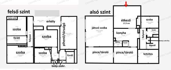 ÖRÖK PANORÁMÁS, 2 szintes, NAGY CSALÁDI HÁZ eladó Badacsonytomajon. A sík telken felépített rendkívül masszív ház alsó szintje badacsonyi bazaltkőből, a felső szint tihanyi kőből és téglából épült. A tégla FALAZATOT 5 CM-ES HŐSZIGETELÉSSEL látták el. A kő és a szigetelt tégla falazatnak köszönhetően a ház KLÍMÁJA RENDKÍVÜL KELLEMES. Télen kevés energiával melegen tartható, nyáron klíma nélkül is valóban komfortos a hőfokérzet a házban. A szintenként 140 m2-es bruttó alapterületű ház alsó szintjén 50 m2-nyi lakóterületet alakítottak ki. Ezt két nagy tároló (egyenként 14m2) és egy jelenleg játszószobaként használt tényleg méretes helyiség (28m2) egészíti ki. A házba egy nagyobb társaság számára is KÉNYELMESEN TÁGAS TÉRKŐVEL BURKOLT TERASZON keresztül léphetünk be. A teraszról kitekintve IGAZÁN POMPÁS PANORÁMÁBAN GYÖNYÖRKÖDHETÜNK. Belépve a méretes konyha-étkező térbe érkezünk. Innen nyílik a konyha, melyet egy kamra egészít ki. A kamra mellet külön helyiségben a Vaillant gázkazán kapott helyet, mely radiátorokon keresztül biztosítja a fűtést. A konyhával szemben egy kis közlekedőbe jutunk, ahol egy fürdőszoba és egy kis szoba van. A közlekedőből vezet fel a lépcső a felső szintre. A felső szinten egy nagy nappaliba érkezünk. Innen egy közlekedőn keresztül a fürdőszobába jutunk, mellette egy közlekedő, melyben MENNYEZETIG ÉRŐ BEÉPÍTETT SZEKRÉNYEK segítenek a tárolásban. A közlekedőből nyílik két, jól bútorozható nagy szoba. A nagyobb szobából és a nappaliból közvetlenül léphetünk ki a MÉRETES KELETI FEKVÉSŰ ERKÉLYRE, ahonnan szintén, a már a földszintről is látható, gyönyörű panorámában gyönyörködhetünk. Az erkélyről nyílik egy KÜLÖN LAKRÉSZ, mely két tágas szobából és egy fürdőszobából áll. A betonfödémnek köszönhetően a közel 40 m2-es TETŐTÉR BEÉPÍTHETŐ, ahova egy külső lépcsőn keresztül juthatunk fel. A kertben 5 sor szőlő és néhány gyümölcsfa található, illetve egy 300 m2-nyi szintén sík kertrész, ahol akár több autó számára parkoló lehet, vagy medence számára is hibátlanul használható. Ez a terület kb. 80 cm-rel alacsonyabban van a házhoz képest. Az ingatlan KÉT UTCÁRÓL IS ELÉRHETŐ személyautóval. A strand 2 km-re,a kikötő 3,5 km-re, vasútállomás szintén a közelben elérhető. A vásárláshoz ILLETÉKMENTESSÉG, CSOK PLUSZ, OTTHON START támogatott hitel igényelhető. NÉZZE MEG az ingatlanról készült VIRTUÁLIS SÉTÁT is, „sétáljon végig” saroktól sarokig ebben a kitűnő elosztású házban! https://my.matterport.com/show/?m=gAvGLk6bgtq A virtuális séta bal alsó sarkában kis ikonokkal tetszés szerint választhat a séta, a kétdimenziós alaprajz, a háromdimenziós alaprajz, a bútorozott és a bútor nélküli verzió, valamint a méretezés között. TÖKÉLETES VÁLASZTÁS A JÓ VÉTELHEZ! Ne hagyja ki ezt a lehetőséget! HÍVJON, és nézze meg személyesen is ezt a sok lehetőséget kínáló ingatlant! Bankfüggetlen INGYENES hitelügyintézés, INGYENES CSOK PLUSZ, OTTHON START HITEL ÜGYINTÉZÉS. Ön csak kitalálja, mire keres megoldást és nyugodtan hátra dőlhet, a többit elintézzük.