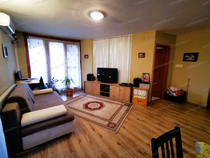 Eladó első emeleti, 60 m²-es lakás Jászberény belvárosában Jászberény szívében, kiváló elhelyezkedésű, 2003-ban épült, tágas és világos első emeleti lakás eladó. A 60 m²-es otthon igényesen karbantartott, azonnal költözhető állapotban várja új tulajdonosát. Elosztása: előszoba, nappali–étkező–konyha, 1 hálószoba, fürdőszoba, külön WC, nagy méretű erkély és egy kisebb erkély. A helyiségek praktikus elrendezésűek, napfényesek és barátságos hangulatúak. A nyílászárók fa szerkezetűek, hőszigetelt üveggel. A burkolatok laminált padló, padlószőnyeg és kerámia kombinációjából állnak. A fűtés és melegvíz-ellátás kombi kazánról, radiátoros hőleadókkal megoldott, a nyári komfortot pedig klímaberendezés biztosítja. A lakás gépesített konyhabútorral és beépített szekrénnyel felszerelt, így akár azonnal birtokba vehető. A társasház zárt belső udvarában kényelmes parkolási lehetőség áll rendelkezésre. Kiváló elhelyezkedésének köszönhetően minden fontos szolgáltatás – üzletek, iskola, orvosi rendelő, tömegközlekedés – pár perc sétával elérhető. Ez a lakás nemcsak ideális otthon, hanem biztos befektetés is a belvárosi elhelyezkedése és megkímélt állapota miatt. Azonnal költözhető, készpénzes vevők számára is elérhető, valamint 3%-os Start hitel igénybevételével is megvásárolható. Főbb jellemzők – összefoglaló Alapadatok: Alapterület: 60 m² Építés éve: 2003 Emelet: 1. Elosztás: nappali–étkező–konyha + 1 szoba Fűtés: kombi kazán, radiátorokkal Klíma: igen Állapot: azonnal költözhető Egyedi előnyök: Extra nagy erkély + kisebb erkély Gépesített konyhabútor és beépített szekrény Belső udvari parkoló Külön helyiségben a fürdő és a WC Világos, jó elrendezésű terek Belvárosi elhelyezkedés, mégis csendes környezet