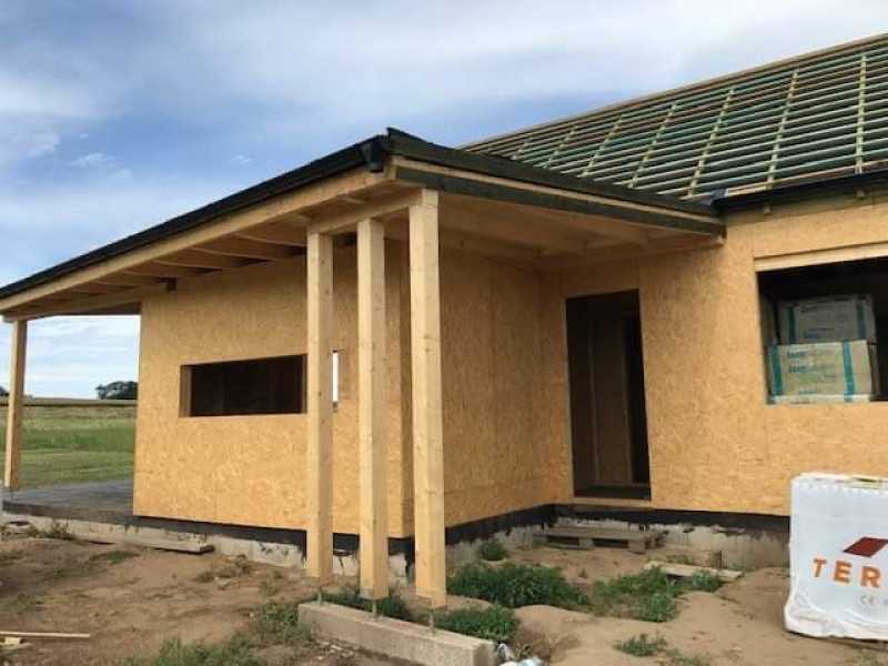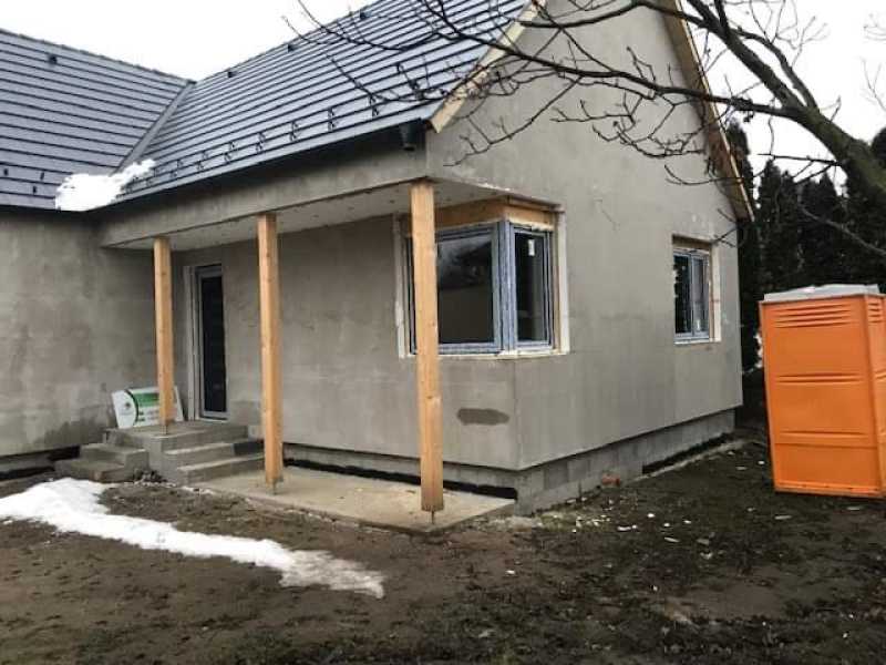 Vállaljuk könnyűszerkezetes házak építését a tervezéstől a kulcsátadásig. Az Ön tulajdonában levő vagy az általunk közvetített telekre az elképzelése szerinti ingatlant valósítjuk meg a következők szerint: Alapfelszereltség Alapozás - statikus által méretezett sáv vagy lemezalap készítése Földszinti padló - lakóterek -0,3 cm önterülő aljzatkiegyenlítés -8 cm hálóval vasalt C12/16 esztrichbeton, padlófűtés -1 rtg PE fólia technológiai szigetelés -15 cm lépésálló expandált EPS szig. ATN150 -1 rtg. 4 mm vtg. mod. bit. lemez talajnedvesség elleni szigetelés -10 cm hálós vasalású C16/20 aljzatbeton -10 cm homokos kavics feltöltés tömörítve -15 cm helyi anyagú feltöltés tömörítve -tömörített termett talaj Padlás hőszigetelt zárófödém -24/120 mm ritkított deszkázat -50x50 mm lécváz közte 50 mm üveggyapot hőszigetelés -200 mm 50/200 mm fenyőpalló 450 mm tengelytávolsággal közöttük 200 mm üveggyapot hőszigetelés -1 rtg (min. 0,2 mm) hőtükrös párazáró fólia a párazárást biztosító ragasztott illesztésekkel, kapcsolatokkal, csomóponti kialakítással - 24/48 mm burkolatrögzítő lécváz -2x12,5 mm tűzvédő RF, vizes helyiségekben impregnált tűzvédő RFI gipszkarton lemez csavarozott rögzítéssel Beépített emelet padlószerkezet -7 cm hálóval vasalt C12/16 esztrichbeton, padlófűtés -1 rtg. PE fólia technológiai szigetelés -22/20 mm EPS ATL-2 lépéshangszigetelő lemez -15 mm OSB lemez -24/120 mm ritkított deszkázat -200 mm 100/200 mm fenyőpalló 450 mm tengelytávolsággal közöttük 200 mm üveggyapot hőszigetelés -1 rtg (min. 0,2 mm)hőtükröspárazáró fólia a párazárást biztosító ragasztott illesztésekkel, kapcsolatokkal, csomóponti kialakítással - 24/48 mm burkolatrögzítő lécváz -2x12,5 mm tűzvédő RF, vizes helyiségekben impregnált tűzvédő RFI gipszkarton lemez csavarozott rögzítéssel Hőszigetelés nélküli tetőtér - beton vagy kerámia cserépfedés - 30/50 mm lécezés - 50/50 mm ellenléc (átszellőztetett légrés) -tetőalátét vízzáró, páraáteresztő fólia - 100/150 mm fenyő szarufa max. 800 mm tengelytávval - dobozolt vagy csüngő ereszes kialakítás - acél ereszcsatorna rendszer Hőszigetelt tetőtér - beton vagy kerámia cserépfedés -30/50 mm lécezés -50/50 mm ellenléc (átszellőztetett légrés) - tetőalátét vízzáró, páraáteresztő fólia - 100/150 mm fenyő szarufa max. 800 mm tengelytávval -150 mm táblás üveggyapot hőszigetelés szarufák között elhelyezve - 5/10 lécváz 50 cm-ként élére csavarozva - 100 mm üveggyapot hőszigetelés stafnik között elhelyezve -2x12,5 mm tűzvédő RF, vizes helyiségekben impregnált tűzvédő RFI gipszkarton lemez előírás szerinti csavarozott rögzítéssel, a vizes helyiségekben impregnált típusú lemez Homlokzati teherhordó fal -2x12,5 mm tűzvédő RF, vizes helyiségekben impregnált tűzvédő RFI gipszkarton lemez, előírás szerinti csavarozott rögzítéssel, a vizes helyiségekben impregnált típusú lemez -30 mm szintezőléc a borítás alatti lécváz tengelytávolsága 600 mm -1 rtg (min. 0,2 mm)hőtükrös párazáró fólia a párazárást biztosító ragasztott illesztésekkel, kapcsolatokkal, csomóponti kialakítással. - 150 mm fa falváz oszlop 5/15 max. 600 mm-enként elhelyezett oszlopok között, max. 1050 mm tengelytávú vízszintes merevítő bordákkal. A kapcsolatok méretezés szerint szegezettek, csavarozottak. Falváz oszlopok között: -150 mm üveggyapot hőszigetelés -12 mm OSB 3 -150 mm homlokzati polisztirol hőszigetelő rendszer - 1 rtg. vizes bázisú, műgyanta kötőanyagú vékonyvakolat. Belső teherhordó fal -2x12,5 mm tűzvédő RF, vizes helyiségekben impregnált tűzvédő RFI gipszkarton lemez előírás szerinti csavarozott rögzítéssel, a vizes helyiségekben impregnált típusú lemez -140 mm KVH fa falváz-oszlop 6/14 cm max. 600 mm-enként elhelyezett oszlopok között, max. 1050 mm tengelytávú vízszintes merevítő bordákkal. A kapcsolatok méretezés szerint szegezettek, csavarozottak. Falváz oszlopok között: -100 mm üveggyapot hőszigetelés -2x12,5 mm tűzvédő RF, vizes helyiségekben impregnált tűzvédő RFI gipszkarton lemez, előírás szerinti csavarozott rögzítéssel, a vizes helyiségekben impregnált típusú lemez Belső válaszfal -2x12,5 mm tűzvédő, vizes helyiségekben impregnált tűzvédő gipszkarton lemez előírás szerinti csavarozott rögzítéssel, a vizes helyiségekben impregnált típusú lemez -100 mm KVH fa falváz-oszlop 6/10 cm max. 600 mm-enként elhelyezett oszlopok között, max. 1050 mm tengelytávú vízszintes merevítő bordákkal. A kapcsolatok méretezés szerint szegezettek, csavarozottak. falváz oszlopok között: -100 mm üveggyapot hőszigetelés -2x12,5 mm tűzvédő, vizes helyiségekben impregnált tűzvédő gipszkarton lemez előírás szerinti csavarozott rögzítéssel, a vizes helyiségekben impregnált típusú lemez Homlokzati fal lábazat -25 cm ZS25 zsalukő lábazati fal -10 cm XPS homlokzati hőszigetelő rendszer -1 rtg. vizes bázisú, műgyanta kötőanyagú lábazati vékonyvakolat Épületvillamosság -épület villamossági tervek szerint -LegrandNiloé szerelvényekkel -riasztóhálózat kiépítése -kaputelefon hálózat kiépítése Épületgépészet -BaxiPlatinum kondenzációs gázkazán -padlófűtés -központi porszívó -igény szerint hűtő és légcserélő rendszer beépítése Nyílászárók -műanyag 5 légkamrás profilok -3 rétegű üvegezés -rejtett tokos alumínium redőny / Opcionális / -igény szerint lehetőség van fa, vagy hőhídmentes alumínium nyílászárók beépítésére Teljes készültség: 440.000.- Ft +5% ÁFA /nm