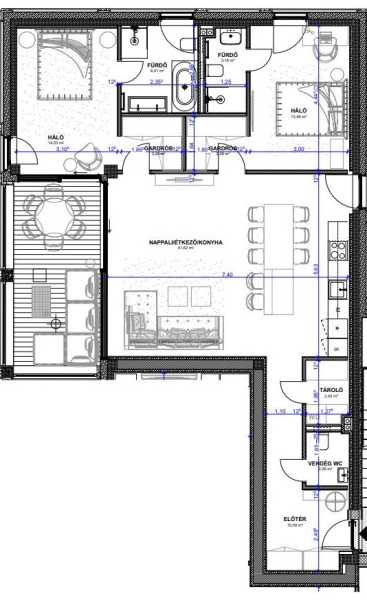 * Az építészet a tradíció és kortárs dizájn ötvözete * Megóvott, ősfás park közel 35 000 m2-en * Panoráma a városra * Életmód szolgáltatások * Legújabb nemzetközi trendeknek megfelelő belsőépítészet * Csúcstechnológiájú gépészeti és Smart Home megoldások Alapterület - 99,93 m2 Terasz - 18,53 m2 2 db teremgarázshely /kötelező megvenni/ 1db 3,52 m2 tároló Helyiséglista: Előtér 10,89 m2 Vendég Wc 2,08 m2 Tároló 2,42 m2 Nappali/étkező/konyha 41,92 m2 2db ensuite lakosztály: Hálószoba 13,88 m2 Fürdő 6,14 m2 Gardrób 3,18 m2 Hálószoba 13,68 m2 Fürdő 3,14 m2 Gardrób 3,06 m2 A 2 db teremgarázshely és a tároló együttes vételára 30 millió forint. A Park A parknak 3 bejárata lesz az Eötvös útról: ebből kettő gyalogos bejárat, egy kizárólag gépjárműveknek, és az egyik kaput a gyalogosok mellett a szervizjárművek használnak majd. A külső, stabilizált burkolatú gyalogos sétányok úgy vannak kialakítva, hogy minden épület kényelmesen elérhető legyen a dús zöld parkon keresztül. Központi épület A központi épület szintjei: pince, földszint és 6 emelet a földszint területe az összes épület lakói számára közös használatú helyiségként szolgál majd. Itt a recepción kívül, egy nagyszerű, kandallós ’country club’ szalon, egy klubszoba és edzőterem kerül kialakításra. A központi épületben 27 lakás, köztük 2 penthouse lakás található az 5. és 6. emeleten. Az épületet egy lift fogja kiszolgálni (13 személyes, 1000 kg) a meglévő külső téglafalszerkezetet ásványgyapot hőszigeteléssel egészítjük ki, kívülről az műemlékvédelmi előírásoknak megfelelően hiteles vakolat architektúrával. A dupla szárnyú ablakok fa vagy alumínium-fa szerkezettel, 3 rétegű üvegezéssel, zsalugáterrel újragyártásra kerülnek az általános szinteken, a penthouse szinteken 3 rétegű üvegezésű, hőszigetelő alumínium nyílászárók készülnek, motoros textil rolókkal. A központi épületbe a B garázsból, a földszintről vagy az 1. emelet kerthez kapcsolódó bejáratán keresztül lehet bejutni. Villa épületek A villaépületek a földszintből és 3 emeletből állnak, a legfelső szinten 3 penthouse lakás található. Minden villaépületben 13-14 lakás lesz, összesen 6 épületben a villa épületeket egy-egy lift szolgálja (8 személyes, 630 kg) a villák szerkezete monolit vasbeton pillér és falszerkezet monolit födémmel. A falszerkezet 20 cm vasbeton fal, plusz minimum 18 cm vastag, ásványgyapot külső hőszigetelés (gipszkarton belső előtétfal készül a konyháknál és hálószobáknál), illetve hőszigetelő alumínium ajtók és ablakok háromrétegű üvegezéssel, motoros rolóval. Minden villa épületbe a megfelelő garázsból, a földszintről vagy az 1. szint főbejáratából lehet bejutni. Parkolás A parkolás két külön földalatti, zöldtetős garázsban lesz, külön bejárattal (A és B garázs). Minden lakáshoz két parkolóhely tartozik. Parkolóhelyek rendelkezésre állnak igény szerint elektromos autó töltéssel. Minden apartmanhoz egy tároló helyiség tartozik. A RFID rendszerű behajtás, a CCTV rendszer és a fűtött rámpák, automata garázskapuk szolgálják a lakók kényelmét. A központi épület és a villaházak közvetlenül a megfelelő garázsokból érhetők el. Fűtés, hűtés és szellőzés A gépészeti rendszerek a közös területekről szervízelhető aknákban futnak, és az egyes emeletek folyosójának álmennyezetében történik az elosztásuk a lakások felé. A következő csatlakozásokat alakítják ki a lakás bejárati ajtaja fölött: hideg, használati meleg víz, cirkulációs vezeték. Fűtési-hűtési rendszer: Friss levegő biztosítás 200 m3/h a központi épületben, 300 m3/h a penthouse-ban és a villaépület lakásaiban, levegő elszívása; független rendszer a konyhai zsíros elszíváshoz 300 m3/h teljesítménnyel. A fűtést a gépészeti helyiségekben elhelyezett központi kondenzációs kazánok biztosítják. Padlófűtés biztosított a fürdőszobákban, opcionálisan további területekkel. A mennyezet felületének hűtését magas energiahatékonyságú hűtő biztosítja. A meleg vizet két lépésben állítják elő: előmelegítik egy környezetbarát víz-levegő hőcserélővel, majd a gázkazán melegíti fel végleges hőmérsékletére. Az alagsori gépészeti helyiségekben használati melegvíz tárolók biztosítják a fennakadásmentes ellátást. A helyiségbe szerelt termosztátok a Smart Home technológiához kapcsolódnak a lakás hőmérsékletének szabályozásához. Minden lakás levegőminőségét egyedi, kompakt légszellőztető egységek biztosítják pollen- és porszűrővel. A BMS (Épület Management Rendszer) rendszer biztosítja a fogyasztás távmérését, leolvasását. Lakások specifikációja Lakásoknál a belmagasság általános helyen 280 cm, a penthouse szinteken pedig legalább 300 cm. (A bejáratok környezetében és a mellékhelyiségekben alacsonyabb, 260 cm és 270 cm). Monolit gipszkarton álmennyezet készül . Központi használati melegvíz rendszer. Hidegburkolatok: Refin*, Cotto d’Este*, Lea Ceramiche*, Florim*, Atlas Concorde* Parketta: Haro *, CP*, Mátraparkett*, Floorexperts*, Edelholz*, Listone Giordano* CPL borítású, furatolt, faforgácslap belső ajtók, fa keretben: Hörmann*, Jeld-wen*, Grauthoff* Kiváló, prémium minőségű szaniterek és öblítőtartályok: Villeroy-Boch*, Duravit*, Laufen*, Geberit*, Grohe* Csaptelepek: Grohe*, Hansgrohe*, Gessi*, Bugnatese*, Zuchetti* Egyedi konyhabútor: Nobilia*, Nolte*, Cucinesse*, Cesar* és Konyhagépek: Bosch-Neff*, Miele*, Elica* Elektromos kábelezés a vezetékekben, a szerelvények megfelelnek a belsőépítészeti követelményeknek: Gira, Berker, Jung * Minden lakásba SmartHome rendszer kerül beépítésre: S