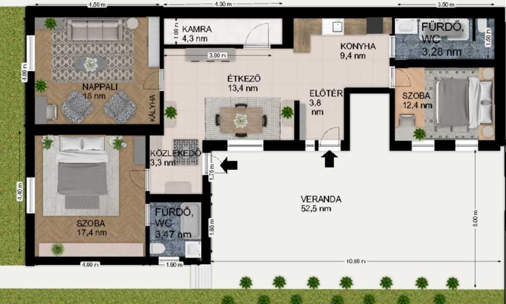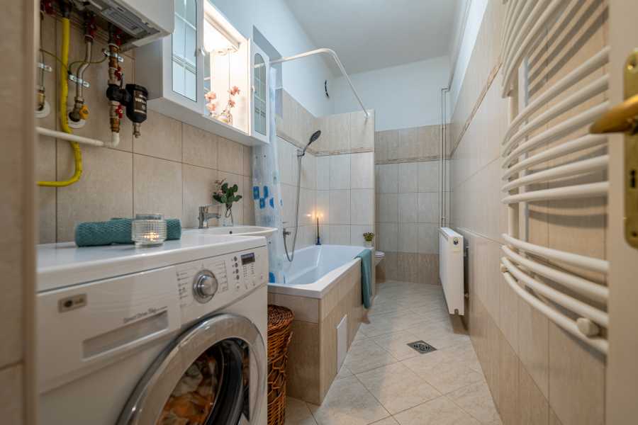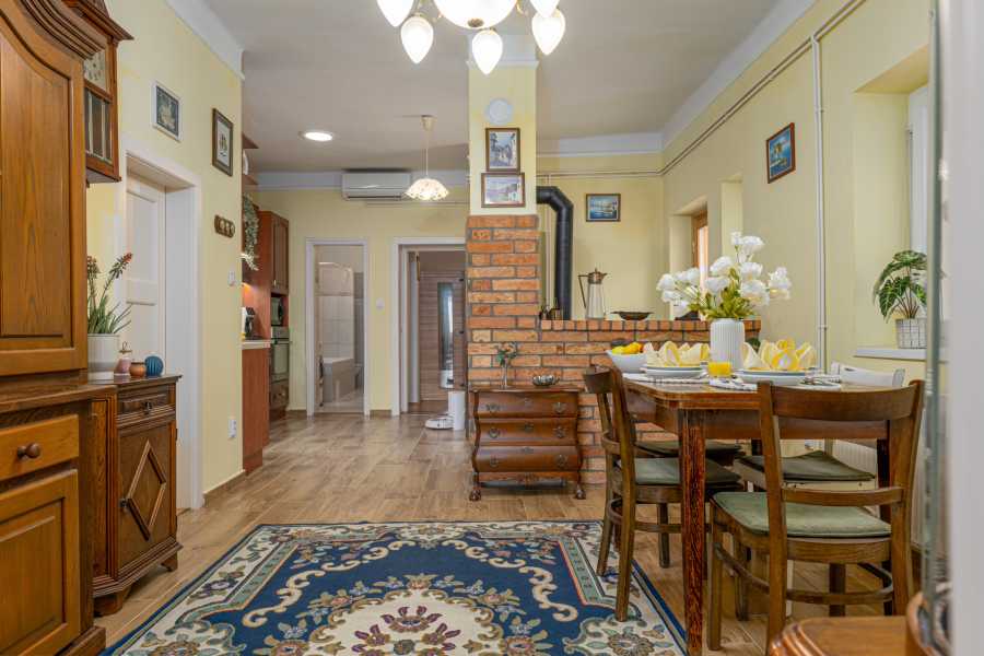 ***PRÉMIUM SZINTEN FELSZERELT ÉS FELÚJÍTOTT OTTHON, SZUPER INFRASTRUKTÚRÁVAL KISNÉMEDIBEN*** A Pest vármegyei, váci járáshoz tartozó KISNÉMEDIBEN eladó egy 1950-es években épült, 2018-ban minden igényt kielégítő minőségben felújított, világos, tágas 91 nm-es, RÖVID HATÁRIDŐVEL KÖLTÖZHETŐ, konyha + étkezős, nappalival + 2 hálószobával, 2 fürdőszobával, +2 wc helyiséggel, szaunával, jakuzzival, garázzsal háztartási helyiséggel, plusz 52 nm-nyi terasszal, napelemmel és napcsővel rendelkező, KLÍMÁS, 1745 nm-es telken elhelyezkedő családi ház. A HÁZ: Az 1950-es években épült, 2018-ban minden igényt kielégítő minőségben felújított családi ház szerető tulajdonosaitól eladó. Az 1745 nm-es telken téglából és részben vályogból épült ingatlan tökéletes otthon vagy nyaraló lehet a festői faluban. A kellemes hőmérsékletről télen az új Boch gyártmányú cirkókazán gondoskodik radiátoros hőleadással, fürdőszobákban törölközőszárítóval. A házban 2db Mitsubishi hűtő-fűtő klíma működik, valamint a nappaliban egy csíki kályha, a konyha, étkezőben pedig egy lemez kályha biztosítja a további alternatívákat. A házat műanyag, dupla üvegezésű nyílászárókkal szerelték fel rovarhálóval és redőnyökkel, melyek az utcafronton alumíniumból készültek, a ház többi részén pedig műanyagból. A felújítás alatt minden ki lett cserélve az épületben: víz- és csatornahálózat, villanyvezetékek, hideg- és melegburkolatok, nyílászárók, tető és festés is készült. A méretre készült konyhabútor az étkezővel egy térben lett kialakítva, melybe beépítésre került az ELECTROLUX sütő, gáztűzhely, elszívó, valamint egy mosogatógép. Természetes fa frontok kerültek a szekrényekre, mely kiválóan illik a ház hangulatához. A felújítás alatt lett beépítve a konyha napcső is, mely folyamatos természetes megvilágítást biztosít a helyiségnek. A házban két fürdőszoba lett kialakítva, mindkettő káddal és wc-vel felszerelt. Kézmosó mindkét helyiségben kapott helyet, illetve a fűtés törölközőszárítóval megoldott. Az egyik fürdőszoba a nappali mellett elhelyezkedő hálószobából nyílik közvetlenül, míg a másik a ház másik végében található szoba mellett helyezkedik el. A ház ölelésében lett kialakítva egy hatalmas, közel 52 nm-es fedett terasz, mely az utcáról nem belátható. Polikarbonát tetejének köszönhetően mindig világos és a ház helyiségeit sem árnyékolja be. Itt kapott helyet az 5 személyes JAKUZZI is, valamint itt található egy locsolásra kiválóan alkalmas ásott kút is. A napelemes rendszer 5 éve lett kialakítva 20 db 380-as panellel és egy 6 kWh Growatt inverterrel, melynek köszönhetően a ház fenntartási költsége alacsony. Az utcáról kényelmesen be tudunk parkolni a garázsba, mely könnyűszerkezetből épült, cserép fedéssel és be is van kamerázva. A hatalmas telek rendezett, minden oldalról körbekerített. A hát folytatásaként különböző melléképületek helyezkednek el (nyárikonyha, füstölő, tároló) A tetőtér deszkázott, pakolható, a pince száraz. A KÖRNYÉK: Elérhető távolságban a környéken minden megtalálható: pékség, bolt, patika, háziorvosi rendelő, gyermekorvosi rendelő, bank, bölcsőde, óvoda, iskola, posta, Kormányablak, kávézók, éttermek, üzletek, bevásárló központok, kertészet. A zöld területet keresők és a sportolni vágyók felfedezhetik a közelben fekvő számos túraútvonalat. A közelben található egy vadaspark, valamint egy botanikus kert is. KÖZLEKEDÉS: M2 autópálya: 8 perc távolságra Budapest 22 perc autóval Távolsági buszmegálló 5 perc gyalogosan. A parkolás az utcán fizetős ingyenes. Érdemes személyesen is megnézni és meggyőződni róla, hogy ez a lakás az életben még szebb, mint a képeken! **PREMIUM LEVEL EQUIPPED AND RENOVATED HOME WITH GREAT INFRASTRUCTURE IN KISNÉMADI** For sale in KISNÉMADI, part of the Vác district in Pest County, is a spacious, bright 91 sqm family home, originally built in the 1950s and fully renovated in 2018 to high-quality standards. Ready for swift move-in, this property features a kitchen with a dining area, living room with 2 bedrooms, 2 bathrooms, 2 additional toilets, a sauna, jacuzzi, garage, utility room, and a 52 sqm terrace. The house is equipped with solar panels, solar tubes, air conditioning, and is situated on a 1745 sqm plot. **THE HOUSE:** This family home, constructed in the 1950s and renovated in 2018, is being sold by its loving owners. Situated on a 1745 sqm plot, the property, built from brick and partly adobe, can serve as a perfect home or holiday retreat in the picturesque village. A new Boch brand combi boiler ensures a pleasant temperature in winter with radiator heating and towel warmers in the bathrooms. The house features two Mitsubishi cooling-heating air conditioners and offers alternative heating options with a tile stove in the living room and a metal stove in the kitchen-dining area. The home has been fitted with plastic, double-glazed windows complemented with insect screens and shutters, with the street-facing shutters made of aluminum and others made of plastic. During the renovation, all building elements were replaced: water and sewage systems, electrical wiring, floors and tiles, windows and doors, roof, and painting. The custom-made kitchen furniture was designed in an open space layout with the dining area, featuring an ELECTROLUX oven, gas stove, extractor hood, and dishwasher. Natural wood fronts complement the cabinets, matching the house's ambiance. A solar tube was integrated into the kitchen during the renovation to provide continuous natural lighting. The house has two bathrooms, each equipped with a bathtub and toilet, and sinks in both rooms, with heating via towel warmers. One b