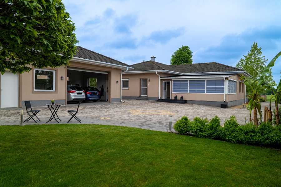 ÁLOMHÁZ ELADÓ PÁPA CSENDES KÜLVÁROSÁBAN! 160 m² lakótér + 88 m² télikert | 2950 m² parkosított kert Költözz be egy olyan otthonba, ami minden nap luxus nyaralás érzését nyújtja! Ez az igényesen felújított, 2005-ben épült családi ház nemcsak egy ház — életstílus. Tágas, világos terek, amerikai konyhás nappali, elegáns étkező, szinteltolásos nagy nappali és prémium kényelmi funkciók várnak rád: 3 hálószoba beépített szekrényekkel Padlófűtés + radiátoros fűtés, vegyes tüzelésű kazán Többzónás klíma Központi porszívó rendszer 80 literes elektromos bojler KÜLTÉRI EXTRÁK: • 88 m²-es télikert — egész évben természetközeli kikapcsolódás • 12 m²-es medence — fúrt kútról táplált, 7 zónás Hunter öntözőrendszerrel övezett kert • 80 m²-es automata napernyős terasz — szélérzékelővel • 60 m²-es kétállásos garázs (kis konyhával, WC-vel, Hörmann kapuval) • Térkövezett autómosó magasnyomású mosóval • Távirányítós kapu • 60 m²-es tároló faház • Grillsarok • 300 literes esővíztartály Plusz: minden zár egy kulccsal nyitható a maximális kényelem érdekében! Ez a ház nem csupán ingatlan — egy biztonságos, kényelmes otthon, ahol élmény élni! A fotók magukért beszélnek, de élőben még lenyűgözőbb. Ne maradj le róla! További információért és megtekintésért hívj bizalommal! DREAM HOUSE FOR SALE IN THE QUIET SUBURBAN OF PÁPA! 160 m² living space + 88 m² winter garden | 2950 m² landscaped garden Move into a home that gives you the feeling of a luxurious vacation every day! This tastefully renovated family home, built in 2005, is not just a house — it’s a lifestyle. Spacious, bright spaces, living room with American kitchen, elegant dining room, large living room with split-levels and premium comfort features await you: - 3 bedrooms with built-in wardrobes - Underfloor heating + radiator heating, mixed-fuel boiler - Multi-zone air conditioning - Central vacuum cleaner system - 80-liter electric boiler OUTDOOR EXTRAS: • 88 m² winter garden — year-round relaxation close to nature • 12 m² pool — garden fed by a drilled well, surrounded by a 7-zone Hunter irrigation system • 80 m² automatic sunshade terrace — with wind sensor • 60 m² two-car garage (with small kitchen, toilet, Hörmann door) • Paved car wash with high-pressure washer • Remote-controlled gate • 60 m² storage wooden house • Barbecue corner • 300 liter rainwater tank Plus: all locks can be opened with one key for maximum convenience! This house is not just a property — it is a safe, comfortable home where you can live! The photos speak for themselves, but it is even more impressive in person. Don't miss out! For more information and viewing, please call us! TRAUMHAUS ZU VERKAUFEN IM RUHIGEN VORORT VON PÁPA! 160 m² Wohnfläche + 88 m² Wintergarten | 2950 m² angelegter Garten. Ziehen Sie in ein Zuhause ein, das Ihnen jeden Tag das Gefühl eines luxuriösen Urlaubs gibt! Dieses geschmackvoll renovierte Familienhaus aus dem Jahr 2005 ist nicht nur ein Haus – es ist ein Lebensstil. Großzügige, helle Räume, Wohnzimmer mit amerikanischer Küche, elegantes Esszimmer, großes Wohnzimmer mit Split-Level-Bereich und gehobener Komfortausstattung erwarten Sie: - 3 Schlafzimmer mit Einbauschränken - Fußbodenheizung + Radiatorenheizung, Mischbrennstoffkessel - Mehrzonen-Klimaanlage - Zentrale Staubsaugeranlage - 80-Liter-Elektroboiler EXTRAS FÜR DEN AUSSENBEREICH: • 88 m² Wintergarten – ganzjährige naturnahe Entspannung • 12 m² großer Pool – Garten, der von einem Bohrbrunnen gespeist wird und von einem 7-Zonen-Bewässerungssystem von Hunter umgeben ist • 80 m² automatische Sonnenschutzterrasse – mit Windsensor • 60 m² Doppelgarage (mit kleiner Küche, WC, Hörmann-Tor) • Gepflasterte Autowaschanlage mit Hochdruckreiniger • Ferngesteuertes Tor • 60 m² großes Lagerholzhaus • Grillecke • 300 Liter Regenwassertank Plus: Alle Schlösser lassen sich mit einem Schlüssel öffnen – für maximalen Komfort! Dieses Haus ist nicht nur ein Anwesen – es ist ein sicheres, komfortables Zuhause, in dem Sie leben können! Die Fotos sprechen für sich, aber in echt ist es noch beeindruckender. Verpassen Sie es nicht! Für weitere Informationen und Besichtigungen rufen Sie uns bitte an!