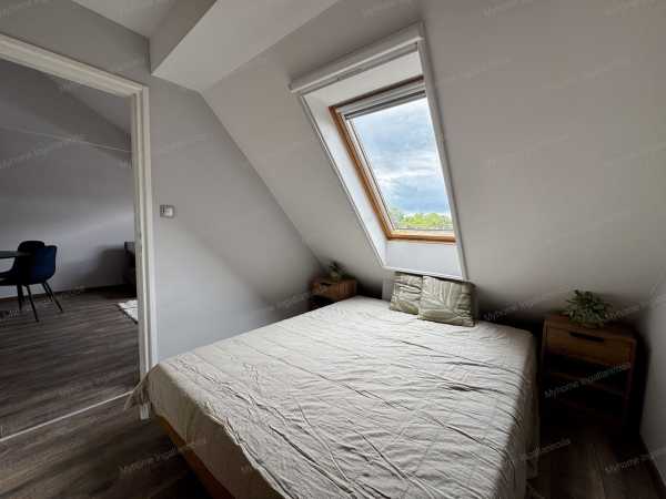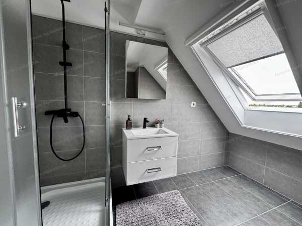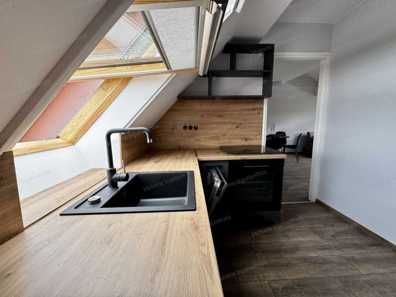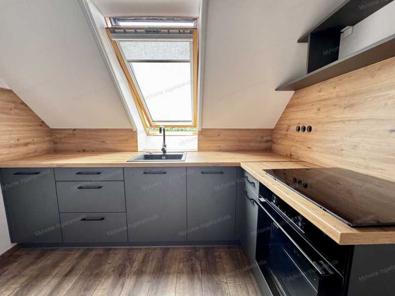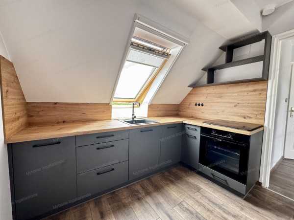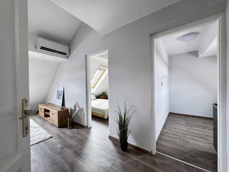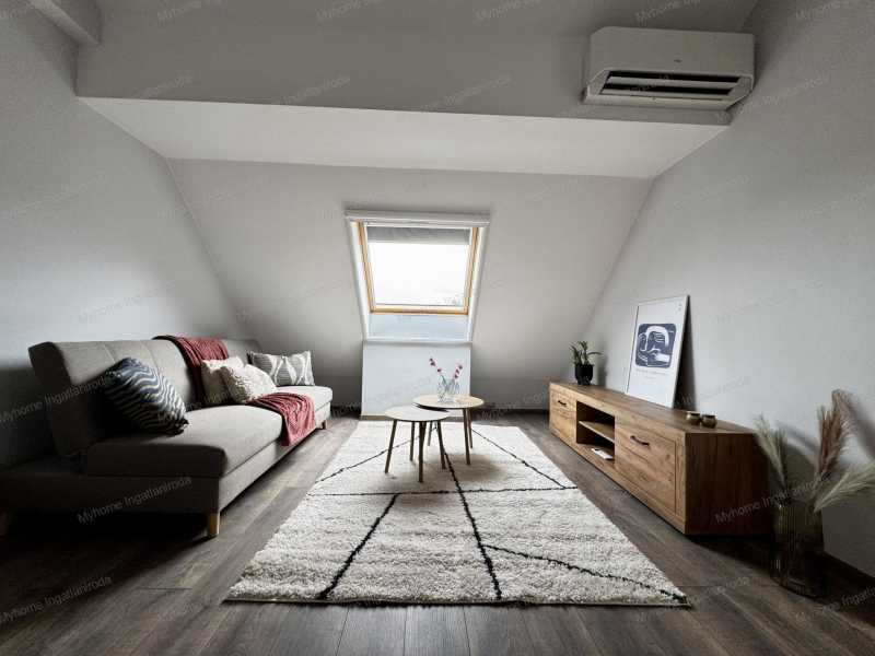 Zalaegerszeg közkedvelt városrészében kínálok megvételre egy nettó 34 m²-es, tágas térérzetének köszönhetően közel 55 m²-es érzetet nyújtó, teljeskörűen felújított tetőtéri lakást. Az ingatlan egy 1998-ban épült társasház 5. emeletén található, lift nélkül. A lakás 2025-ben esett át átfogó felújításon, amely során modern, letisztult stílust kapott, így ideális választás első lakásnak, fiatal pároknak vagy befektetési célra. Főbb jellemzők: • teljeskörű műszaki és esztétikai felújítás • új nyílászárók, fényvédőkkel és szúnyoghálóval • új burkolatok és csempék • korszerűsített vízvezeték-hálózat • nagy teljesítményű hűtő-fűtő klíma + elektromos radiátorok • fürdőszobában törölközőszárítós radiátor • modern, új konyhabútor minőségi beépített gépekkel (mosogatógép, főzőlap, villanysütő) • a gáz bevezetve, jelenleg nem használják fűtésre • teljes, új bútorzat – a vételár részét képezi A tetőtéri kialakításnak és a nagy felületeken beáramló természetes fénynek köszönhetően a lakás világos, hangulatos és otthonos. A praktikus térszervezés miatt a nappali és a háló is kényelmes méretű. Elhelyezkedés: Az Ola városrész csendes, mégis jól megközelíthető környék, ahol a mindennapi élethez szükséges szolgáltatások rövid távolságon belül elérhetők. Ez az ingatlan ideális választás lehet: • saját részre költözőknek, • első lakást keresőknek, • vagy azonnal kiadható, alacsony fenntartású befektetésnek. További információért és megtekintésért keressen bizalommal! Az ingatlanban otthon Myhome