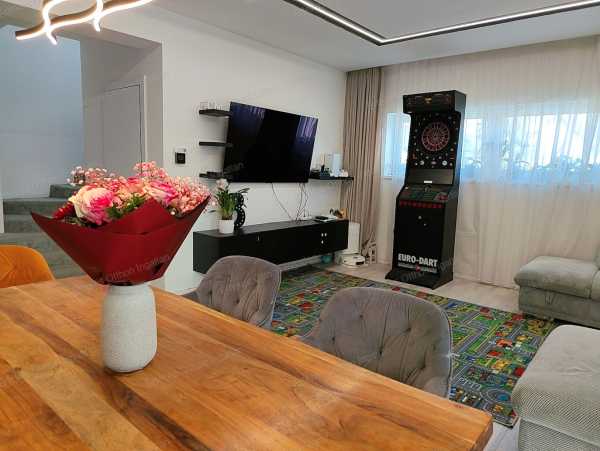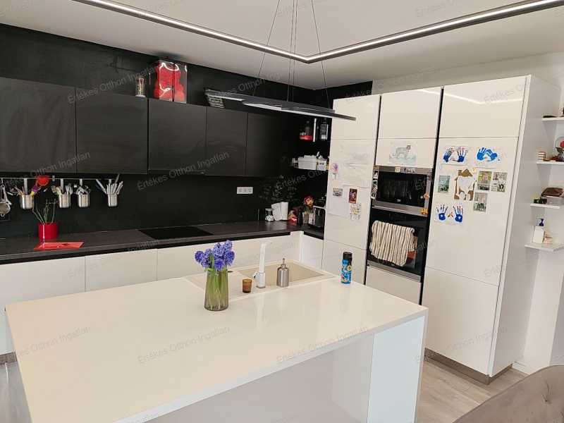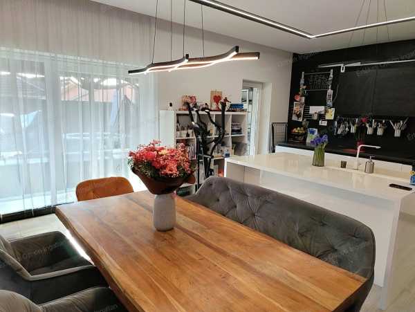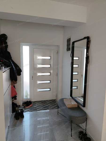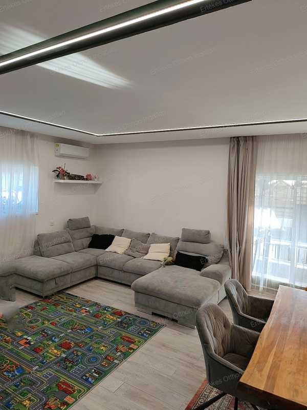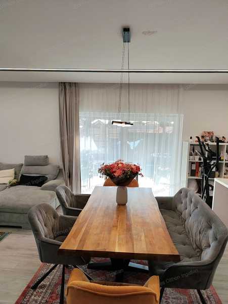 Modern, tágas ikerház Nyíregyházán – 4 hálószoba, 2 terasz, nyugodt környezet Nyíregyháza csendes, nyugodt részén kínáljuk ezt a 2019/2020-ban épült, modern kialakítású, 135 m²-es ikerházat, amely tökéletes választás nagyobb családnak vagy azoknak, akik szeretik a tágas, jól élhető tereket. Az ikerház eltolt építésű, így az áthallás minimális – a nyugalom nem csak ígéret, hanem valóság. Elrendezés – átgondolt, családbarát terek Földszint: -Amerikai konyhás nappali -Mosókonyha -Fürdőszoba -Külön WC -Előtér -31,41 m²-es fedett terasz, amely a nappaliból, konyhából és étkezőből is megközelíthető A nappali világos, napfényes, a terasz pedig valódi plusz élettér tavasztól őszig. Emelet: -4 külön nyíló hálószoba -Fürdőszoba -Külön WC -Gardrób -Közlekedő -15 m²-es emeleti terasz Itt tényleg mindenkinek jut saját tér. Külső adottságok -450 m²-es saját telek -30 m²-es fedett kocsibeálló -Külön biciklitároló Ide kényelmesen befér az autó, a gyerekbicikli, a grill és még marad hely a kertnek is. Műszaki tartalom – ami hosszú távon számít -Kondenzációs gázkazán -Padlófűtés a közös terekben -Radiátoros fűtés a hálószobákban -Fürdőszobában törölközőszárítós radiátor -Kétkörös, külön szabályozható hőszabályzás -2 klíma (földszint + emelet) -30-as Porotherm tégla -15 cm homlokzati szigetelés -Lapostető 30 cm hőszigeteléssel és dupla vízszigeteléssel Az ingatlan napfényes, jó elrendezésű, gépesített, a bútorok pedig megegyezés szerint maradhatnak. Miért szerethető? ✔ Tágas, mégis jól tagolt élettér ✔ 4 hálószoba – ritkaság a piacon ✔ Két terasz – alsó és felső ✔ Modern, 2019-es építés ✔ Csendes környék ✔ Minimális áthallás az eltolt kialakítás miatt Ez az a típusú otthon, ahova nem kinövésre, hanem hosszú távra költözik az ember. Teljes körű ügyintézés Az adásvételt végigkísérjük az első lépéstől a kulcsátadásig: -hitelügyintézés -megbízható ügyvédi háttér -energetikai tanúsítvány -zökkenőmentes lebonyolítás