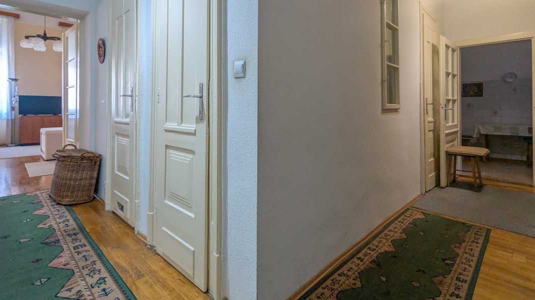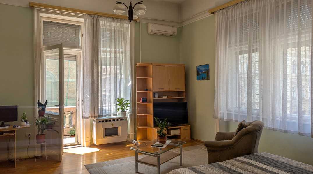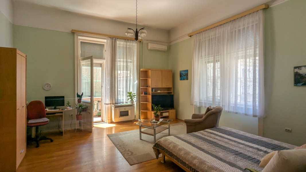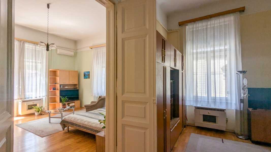 Saroklakás erkéllyel – 2 bejárat, 4 m belmagasság, kiváló lokáció! Budapest egyik legkedveltebb városrészében, a VI. kerületben, pár lépésre az Andrássy úttól, eladó egy 2. emeleti, liftes házban lévő erkélyes saroklakás egy klasszikus, jó állapotú, 25 lakásos polgári társasházban. A társasház tetőrészét néhány éve újították fel, jövő évben a homlokzat felújítását tervezik, a társasház megtakarítással rendelkezik. A kapu alatt belépve olyan érzésünk van, mintha egy régi várba lépnénk be. Elképesztő, hogy mennyi apró építészeti részlet és kovácsoltvas munkák, megmaradtak az évek során. Még a lakások ajtajai is várfalakra emlékeztetnek. A lakás különleges adottságú: világos, délnyugati tájolású, 4 méteres belmagasságával pedig igazán tágas, elegáns érzetet kelt. Az erkélyről gyönyörű kilátás nyílik mind Pest, mind Buda irányába, így a naplementék látványa is garantált élmény. Az ingatlan modrenizálásra vár, rendkívül jól alakítható terekkel rendelkezik, így kiváló alap egy egyedi otthon vagy befektetés kialakításához. A két bejáratnak köszönhetően akár két külön lakás, vagy lakás + iroda is kialakítható. Főbb jellemzők: alapterület: 104 m2 2. emeleti, sarokelhelyezkedésű lakás a lakás nem a körfolyosóról hanem a lépcsőházból nyílik belmagasság: 4 m erkély szép kilátással Pest és Buda felé tájolás: délnyugati (DNY) – egész nap világos 2 külön bejárat – sokféle funkcióra alkalmas fürdőszoba fürdőkáddal, külön WC fűtés: gázkonvektor jól alakítható, világos terek saját igényre szabható tágas, klasszikus polgári stílus csendes lakás, mégis kiváló központi elhelyezkedés közös költség: 16.000,- Ft/hó Helységlista: szobák: 31,6 és 28 és 7,2 m2 konyha: 13,7 m2 kamra: 3 m2 közlekedő: 16,3 m2 fürdőszoba: 3,5 m2 WC: 1 m2 erkély: 3,2 m2 Lokáció: Pár lépésre az Andrássy úttól, pár percre a Nyugati pályaudvartól, Oktogontól Kiváló tömegközlekedés: 4-6 villamos, kisföldalatti, metró, buszok Közelben boltok, kávézók, éttermek, iskolák, parkok Ez a lakás igazi ritkaság a belvárosi piacon: tágas, világos, szép kilátással és rengeteg lehetőséggel, kiváló közlekedéssel, egy csendes, mégis központi helyen. További kérdésekre szívesen válaszolok.