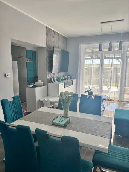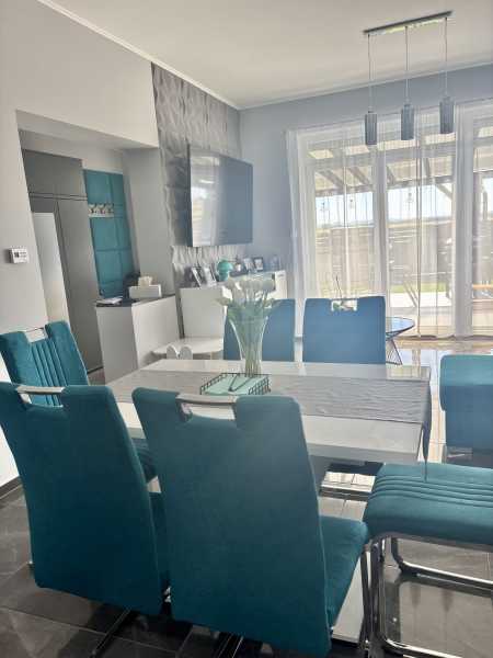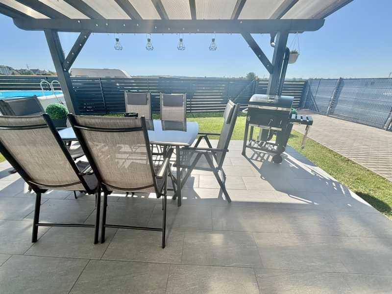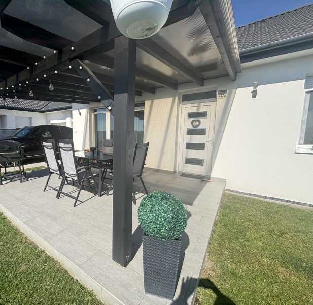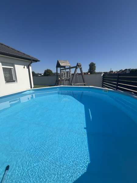 Luxus családi ház eladó Pápa csendes, kertvárosi részén! Szeretnél egy igazi modern és alacsony rezsijű otthonban élni? Akkor ez az ingatlan számodra tökéletes választás! Főbb jellemzők: • 93 m²-es ikerház (csak a garázs fala közös) • Társasházi lakásként nyilvántartva • Gázcirkó fűtés + klíma, nagyon alacsony rezsivel • Kertre és medencére néző kilátás • Saját medence vízforgatóval • 2023-ban épült fedett, 20 m²-es terasz • 2024-ben teljes kerítéscsere • 2025-ben vízlágyító rendszer beépítve • Elektromos garázskapu, térkövezett garázs és bejáró • Redőnyök minden ablakon (a nappaliban elektromos, a többi helyiségben hagyományos), minden ablakon szúnyoghálóval • Modern bútorokkal berendezett, bútorozás megegyezés szerint Telek és kert: • 349 m² telek • 248 m² kertkapcsolat • 5 m² külön tároló az árban • Saját mini játszótér csúszdával a legkisebbeknek Miért különleges? • Kertvárosi, fiatalos, újépítésű utcában található • Nyugodt, csendes környék, kedves és segítőkész szomszédok • Kiváló elrendezés, minőségi anyagok (15 cm szigetelés, Bramac cserép) • Megegyezés szerint költözhető, gondosan karbantartott otthon Elhelyezkedés: Pápa csendes kertvárosi részén, kiváló lokációval, alacsony rezsivel, ideális választás családoknak és azoknak, akik modern, fiatalos környezetben szeretnének élni. Ne hagyd ki ezt a páratlan lehetőséget – ez az ingatlan igazi ritkaság a piacon! Luxus-Einfamilienhaus zu verkaufen in einer ruhigen Wohngegend von Pápa! Möchten Sie in einem modernen Zuhause mit sehr niedrigen Nebenkosten wohnen? Dann ist diese Immobilie die perfekte Wahl für Sie! Haupteigenschaften: 93 m² Doppelhaushälfte (nur die Garagenwand ist gemeinsam) Als Wohnung im Grundbuch eingetragen Gastherme + Klimaanlage, sehr niedrige Betriebskosten Blick auf Garten und Pool Eigener Pool mit Umwälzanlage Überdachte Terrasse (20 m²), neu gebaut im Jahr 2023 Kompletter Zaunaustausch 2024 Wasserenthärtungsanlage installiert 2025 Elektrisches Garagentor, gepflasterte Einfahrt und Garage Rollläden an allen Fenstern (im Wohnzimmer elektrisch, in den übrigen Räumen manuell) + überall Insektenschutzgitter Modern möbliert, Möblierung nach Vereinbarung Grundstück und Garten: Grundstücksfläche: 349 m² Gartenfläche: 248 m² Separater Abstellraum (5 m²) im Preis enthalten Eigenes Mini-Spielplatz mit Rutsche für Kinder Warum besonders? Ruhige, junge Wohngegend mit Neubauten Freundliche und hilfsbereite Nachbarschaft Hochwertige Materialien (15 cm Dämmung, Bramac-Dachziegel) Nach Vereinbarung beziehbar, sehr gepflegtes Zuhause Lage: In einer ruhigen Wohngegend von Pápa, mit sehr niedrigen Nebenkosten, ideal für Familien oder alle, die in moderner und junger Umgebung leben möchten. Verpassen Sie nicht diese seltene Gelegenheit – diese Immobilie ist ein echtes Highlight auf dem Markt!
