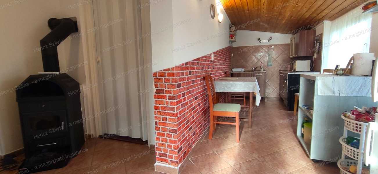Csendes menedéket keres a Balatonnál? Megtalálta! BALATONFÖLDÁR KÖZVETLEN KÖRNYEZETÉBEN kínálom eladásra ezt a minden igényt kielégítő, 2012-ben teljeskörűen felújított, ÉVEN ÁT LAKHATÓ INGATLANT. Itt a természet nyugalma találkozik a fenntarthatósággal! Az ingatlan teljes berendezéssel, minden ingósággal együtt eladó – ide tényleg csak a bőröndjét kell hoznia! AZ INGATLAN PARAMÉTEREI ÉS ELOSZTÁSA: - Telek: 1104 m²-es, gondozott, parkosított terület gyümölcsfákkal - Közművek: Vezetékes víz és villany bekötve. - Besorolás: Külterület (tulajdoni lapon: kert és gazdasági épület). - Alapterület: 63 m²-es, tégla építésű ház 5 cm-es Nikecell szigeteléssel. - Belső elosztás: Előtér, konyha-étkező, 3 különálló szoba, zuhanyzós fürdőszoba + WC. TECHNOLÓGIA ÉS REZSIBIZTONSÁG: - Napelem: 4 kW-os rendszer, amely szinte lenullázza a villanyszámlát. - Fűtés: Fűtésre optimalizált hőszivattyús klímák, kiegészítve egy vízteres kandallóra kötött központi fűtésrendszerrel. - Melegvíz ellátás: 80 literes Ariston bojler biztosítja. - Biztonság: Kiépített riasztó- és kamerarendszer. WELLNESS ÉS SZABADIDŐ A KERTBEN: - Medence: 7 x 3 x 1,6 méteres épített medence, vízforgatóval és automata vegyszeradagolóval. - Kikapcsolódás: Akác rönkből készült pavilon, hintaágy és kiépített bográcsozó/grillező hely. - Sport: A kert hátsó részén füves-homokos terület focizáshoz vagy tollasozáshoz. - Tárolás: 15 m²-es száraz pince és egy szigetelt kerti faház WC-vel. - Parkolás: Szigetelt garázs + 2 további zárt kocsibeálló a telken belül. Az ingatlan közvetlenül az erdő mellett, csendes, átmenő forgalomtól mentes környezetben fekszik, ahonnan a Balaton-part mindössze 1,5 km-re, a legközelebbi bevásárlási lehetőség pedig 700 méterre található. Ez az ingatlan alkalmas állandó lakhatásra, de adottságai (medence, felszereltség, lokáció) révén nyaraltatásra is remek lehetőség! Ne maradjon le a lehetőségről! Hívjon még ma, és nézzük meg együtt! Üdvözlettel: Hencz Szilvia – a megbízható ingatlanos "Ügyfélbarát megoldások az ingatlanpiacon"