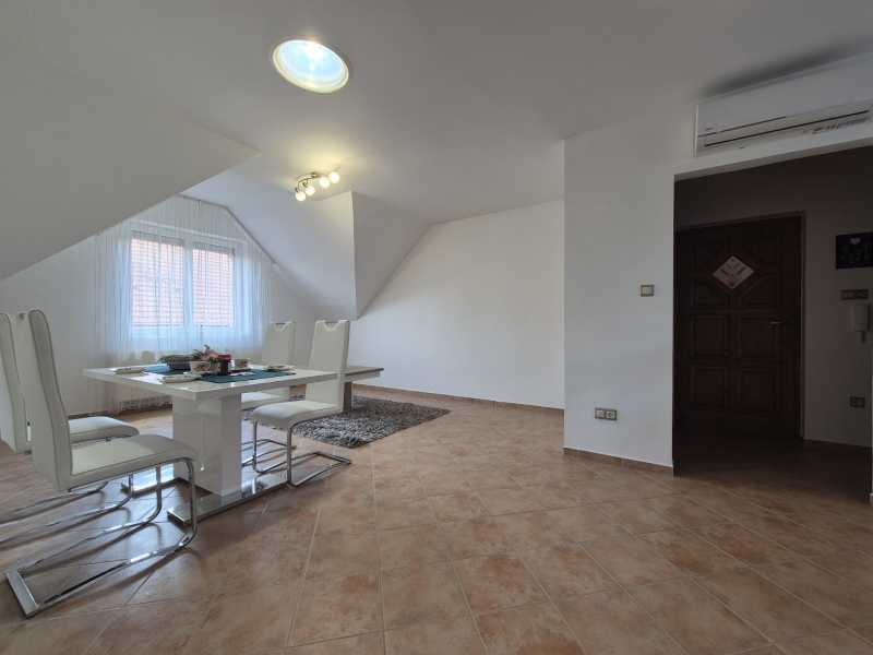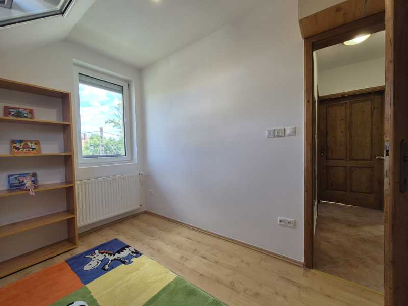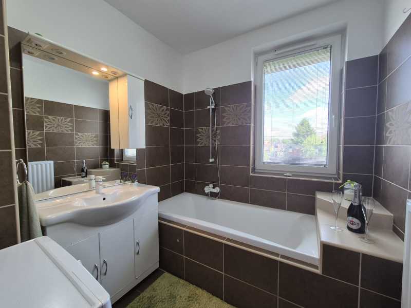 72 m²-es, 3 szobás, azonnal költözhető lakás eladó Győr-Révfalu zöldövezeti részén. A lakás frissen festett, részben bútorozott, gépesített, jó elosztású és kiváló állapotban van. Alapterület: 72 m² Szobák: nappali + 2 háló Állapot: frissen festett, részben bútorozott, gépesített Fűtés: új BOSCH kondenzációs gázkazán Klíma: WiFi-s hűtő-fűtő Költözhető: azonnal Tartozékok: 2 db saját kocsibeálló (zárt udvari + utcai térköves) Távirányítós kapubejárat Saját, zárható 6 m²-es külső tároló Kb. 150 m²-es füvesített, gondozott kert Helyiségek: Előtér beépített szekrénnyel Konyha-nappali egy légtérben Külön spájz Fürdőszoba káddal Külön WC 2 hálószoba (10 m² és 12 m²) Felszereltség: BOSCH gépek: főzőlap, sütő, hűtő, mosogatógép Samsung mikro, Kata design páraelszívó Elektromos redőnyök minden ablakon Elektromos tetőtéri ablakok (távirányítóval) 1 távirányítóval vezérelhető az összes redőny és ablak LED világítás minden helyiségben Vízlágyító rendszer a padlástérben Szigetelt padlásfödém (15 cm Rockwool + tetőfólia + járható deszkázat) Frissen tisztított WiFi-s hűtő-fűtő klíma Alacsony rezsi: gázszámla max. 15.000 Ft télen