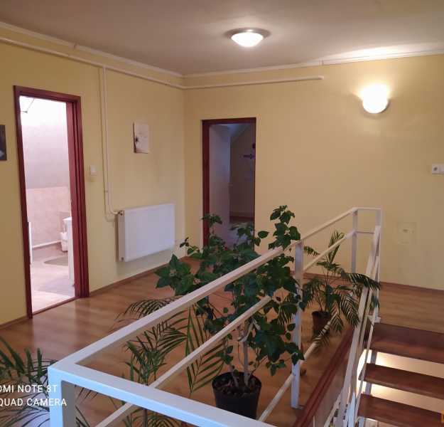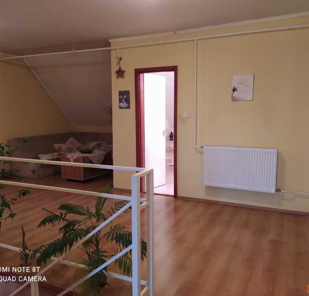 Békésen, az Ibrányi városrészen, eladó egy 180 nm-es, kilencvenes években épült téglaház, garázzsal. Irányár: 38,9 MFT Tel: +36205020207 Nyilvántartási szám: 124 Békésen, nyugodt csendes környezetben található az 1996-ban, egyedi tervezés alapján kivitelezett, 5 szoba + 2 nappalis családi ház. A tetőteret 2007-ben építették be. A földszinti előszobából, egy tágas nappaliba léphetünk, mely az ebédlővel egy légtérben van. A konyha átadóablakkal és boltívvel kapcsolódik ehhez a 43 nm-es, közös térhez. Lent 2 hálószoba kapott helyet, valamint egy kádas fürdőszoba, és a WC külön mellékhelyiségben. A nappaliból vezet egy nagyon kényelmes lépcső a tetőtérbe, ahol egy másik nappalit találunk. Itt is van 3 külön bejáratú egész szoba, és egy zuhanyzós fürdőszoba, WC-vel. A fenti, galériás nappali, egy széles közlekedőben folytatódik, ami L alakban végig fut az egész tetőtéren. Természetes fénnyel jól megvilágított, kimondottan világos, nagy teret alkotnak együtt. A lakásnak egyik jó adottsága, hogy a gyerekek és a szülők eltérő szokás szerint használhaták a saját nappalijukat. A fenti közlekedőből egy 8 nm-es erkélyre léphetünk, ahonnan szép kilátás nyílik a pihenőkertre. A főépülettel egybeépítve, egy 15 nm-es kazánház,17 nm-es garázs található. Valamint egy különálló hő-, és hangszigetelt kb. 10 nm-es műhely, ami korábban hangstúdió volt. A buszmegálló és a bolt egészen közel helyezkedik el, 400-500 méterre. Az óvoda és iskola is csupán 1000-1500 méter, a városközpont 2 kilométerre van. A ház nagy alapterülete ellenére, a rezsije meglepően kedvező. A központi fűtés működtethető vegyes és gázkazánról is, mindkettőt pár éve cserélték korszerűbbre. A tetőtéri nappaliból szükség szerint még egy szobát nyerhetünk, ha esetleg bővül a család. Akár konyhává is alakítható ez a helyiség, mert szomszédos a vizesblokkal, így viszonylag ez egyszerűen megtehető. Így könnyen két-három generácó együttélésre is alkalmassá válhat a ház. 4 gyermekes családnak a legideálisabb, de 3 gyermekkel, és egy velünk élő idősebb hozzátartozóval is pont jó ez az elrendezés, és szobaszám. A helyiségek nagy száma, és belső elrendezése miatt, ez az otthon, sok lehetőséget kínál. A legsajátosabb elképzelésekre is, jó eséllyel alkalmassá tehető. Lépjen ki a szűkös lakásból, vagy a kinőtt családi házból, válassza ezt a kényelmesen tágas, napfényes kertes házat! Tekintse meg! Kisebb kertes ingatlanra, csere szóba jöhet.