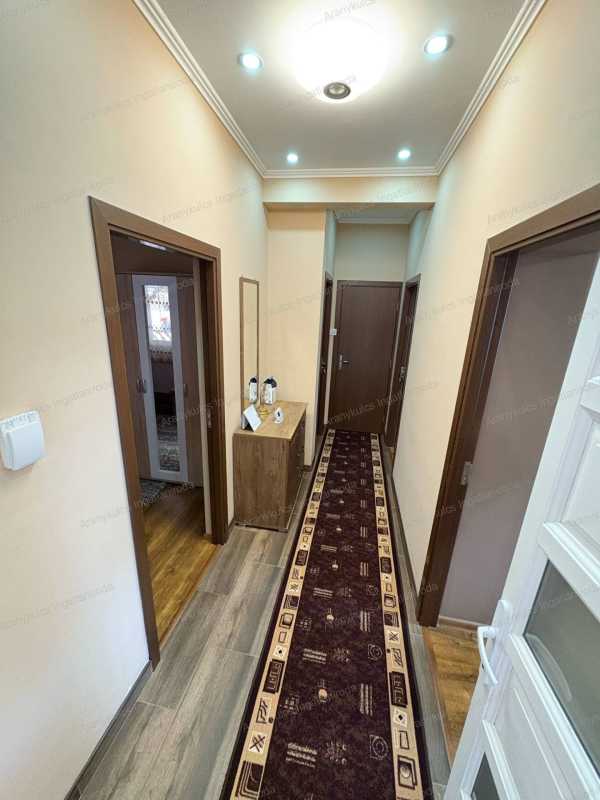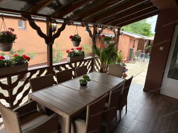 Eladó Sarkadon a városközpont közelében egy gyönyörűen felújított, 100 m²-es téglafalazatú családi ház, amely egy 920 m²-es összkertes telken helyezkedik el. Ez az ingatlan ideális lehetőség azok számára, akik szeretnének egy igényes, kényelmes otthont, közel mindenhez, mégis csendes, nyugodt környezetben. A 2023-as felújítás során a ház teljes körűen megújult, így az új villany-, víz- és csatornarendszer, a modern gáz-cirkó fűtés, valamint az új műanyag nyílászárók garantálják a korszerűség és a komfort érzetét. A fürdőszoba és a külön WC is teljesen felújított formában várja az új tulajdonost. Az ingatlan belső elrendezése praktikusan kialakított: tágas konyha és étkező, három kényelmes szoba, folyosó, fürdőszoba, külön WC, valamint egy kazánház biztosítja a kényelmet és a funkcionalitást. A kertben található egy fedett terasz (15 m²), ahol kellemes időtöltésre nyílik lehetőség, továbbá egy garázs, kerti kiülő, hátsó kert, valamint egy 10 m²-es, felújított üzlethelyiség, mely kiváló lehetőséget nyújt vállalkozás indítására. A fűtésről kombi gázkazán gondoskodik radiátoros hőleadókkal, melyhez vegyes tüzelésű lehetőség is rendelkezésre áll, emellett a klimatizálásról is klíma gondoskodik, biztosítva a kellemes hőmérsékletet egész évben. Ne habozzon, keressen minket még ma, és tekintse meg személyesen ezt a kiváló állapotú, sok lehetőséget rejtő ingatlant Sarkadon! Szántó Nikoletta +36 30 353 0521 Ha további kérdése van, forduljon hozzám bizalommal! Ha hitelre van szüksége, a legkedvezőbbet megtalálom Önnek és az ügyintézés fáradalmait is átvállalom. Ügyvédet sem kell keresnie, mert irodánk ingatlan ügyekben jártas, profi ügyvédet biztosít az Ön részére. Mindent tud egy helyen intézni! Bízza profikra ingatlanügyeit!