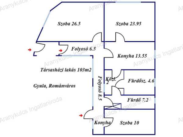 Gyulán a Gábor Áron utcában eladásra kínálunk egy 103m2 alapterületű, vegyes falazatú társasházi lakást amelyhez 225m2 kizárólagos használatú telekrész tartozik a társasház alapitó okirat szerint. A 103m2 alapterületű ingatlan homlokzatát korábban felújították, a belső terek viszont karbantartást igényelnek. Az ingatlan első részében megtalálható: közlekedő folyosó, két szoba, konyha, fürdőszoba, gardrób helyiség, a hátsó részében: fürdőszoba, gardrób, közlekedő, konyha, egy szoba. Fűtéséről konvektorok, melegvíz ellátásáról átfolyós gáz- vízmelegítő gondoskodik. Az ingatlan alkalmas két generáció együttélésére, vállalkozás kialakítására, apartman üzemeltetésére. Elhelyezkedésének köszönhetően kiváló befektetési lehetőség kínálkozik új tulajdonosa, tulajdonosai számára. A GYULAI VÁRFÜRDŐ MINDÖSSZESEN 400 MÉTER TÁVOLSÁGRA TALÁLHATÓ az eladásra kínált ingatlantól! Amennyiben új építésű ingatlant kíván építeni segítséget nyújtunk a tervező kiválasztásában és az építkezés kivitelezésével kapcsolatosan. Hívjon még ma és tekintse meg személyesen! Szántó Nikoletta Rotár Marianna +36 30 353 0521 +36 70 601 60 81 Ha további kérdése van, forduljon hozzám bizalommal! Ha hitelre van szüksége, a legkedvezőbbet megtalálom Önnek és az ügyintézés fáradalmait is átvállalom. Ügyvédet sem kell keresnie, mert irodánk ingatlan ügyekben jártas, profi ügyvédet biztosít az Ön részére. Mindent tud egy helyen intézni! Bízza profikra ingatlanügyeit!