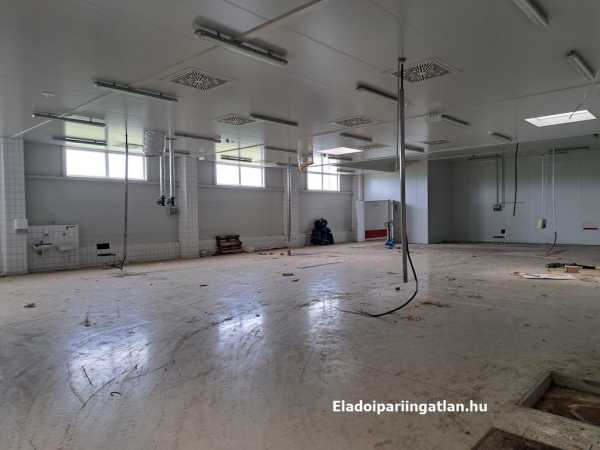 Eladó Abán, az M7-es és a 63-as út csomópontjától 15 km-es távolságban, egy 2015-ben élelmiszer gyártó üzemnek épült modern telephely. Telek 18 346 m2-es amelyen egy összesen 2 346 m2-es épület található, kétszintes iroda és szociális területtel, ipari övezetben, de a település közvetlen közelében. Az épület magába foglal egy gyártó csarnokot, azt kiszolgáló raktárokat és iroda/szociális részeket. Az üzem élelmiszer (pizza) gyártó üzemnek épült de az eredeti funkción kívül sokrétű használatra alkalmas. A fő épület 26 m szélességgel és 66 m-es hosszúsággal rendelkezik. Ez a tér a meglévő válaszfalak eltávolítása által egy térré alakítható (köztes tartószerkezeti oszlopok nélkül), mivel az áthidaló gerendák az épület teljes szélességét, a 26 m-t áthidalják. Ehhez csatlakozik egy két szintes 7,5 m szélességű, 42 m hosszúságú épület rész, aminek emeleti részén találhatóak az irodák, szociális részek és a szolgálati lakás. Belmagasság 6m tiszta- és 7,1 m-es csúcsmagasság. 3 db szekcionált ipari kapu, (2 db szintbeni és egy db süllyesztett) Padló: 20 cm vastag acélhajbeton lemez, 5 tonna/m2 terhelhetőséggel. Szerkezeti elemek: vasbeton oszlopok és gerendák, osztásköz 26 m X 6 m, szendvicspanel falak 10 cm-es szigeteléssel. Hőszigetelt nyílászárók, kiépített a szomszéd létesítménnyel közös tűzi víz tároló. Az élelmiszeripari gépek és a mobil raklaptároló állványrendszer már nincs az épületben. Irányár: 745 Millió Ft. + ÁFA. Ipari ingatlanokkal foglalkozom 18 éve. Nehéz eligazodni ezen a területen, mert sokféle adottságú és korú ipari ingatlan van a piacon. Számtalan különböző eredményes kialakítással találkoztam munkám során. Ha elfogadják, szívesen segítek, hogy használható megoldás alakuljon ki az Önök vállalkozása részére.