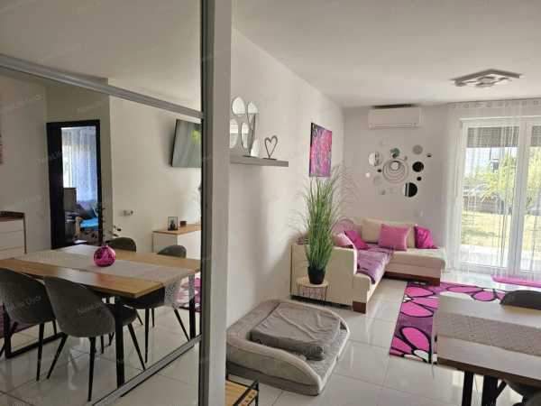 Újszerű, kertkapcsolatos, FÖLSZINTI lakás eladó Győr–Révfalu frekventált részén – saját parkolóval Győr egyik legkeresettebb városrészében, Révfaluban kínálok megvételre egy 2019-ben épült, téglaépítésű, földszinti, kertkapcsolatos lakást, amely állapotát tekintve szinte újszerű. Az 54 m²-es lakás amerikai konyhás nappalival és 2 külön nyíló szobával rendelkezik, így ideális választás pároknak, kiscsaládoknak, de befektetésnek is kiváló. Főbb jellemzők Amerikai konyhás nappali + 2 külön szoba 16 m²-es terasz + kb. 200 m² saját kert A terasz és kert a nappaliból elérhető Nyugati tájolás, egész nap világos terek Padló- és falfűtés, házközponti rendszer Klímaberendezés az amerikai konyhás nappaliban Beépített bútorok az előtérben B energetikai besorolás Lift, akadálymentesített épület (lépcsőfok nélkül megközelíthető) Parkolás és környezet Saját, zárt udvari parkoló, az árban benne van Újszerű, szigetelt társasház Rendezett, igényes lépcsőház Buszmegálló 1 percen belül Kertre néző, nyugodt lakókörnyezet További információk Jelenleg bérbe adott, a birtokbaadás kb. 1 hónapon belül megoldható A bérlő szívesen maradna, így akár azonnali hozamot biztosító befektetés Közös költség: 16.120 Ft/hó Fenntartási költsége kedvező Tulajdonjog rendezett MENNYIÉRT LEHET MEGVÁSÁROLNI? A lakás ára: 80.000.000 Ft. Várom hívásodat, ne maradj le róla! Keress bizalommal, akár hétvégén is. Sokorai János + 3️⃣6️⃣ 7️⃣0️⃣ / 3️⃣2️⃣2️⃣ 6️⃣4️⃣6️⃣9️⃣