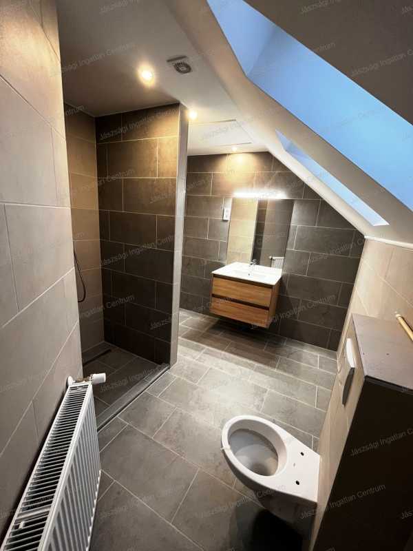 Jászberényben, a belvároshoz közel, egy 653 nm-es telken, 3 lakásos társasház tetőtéri lakása eladó. Az ingatlan teljes felújításon esett át, egy múlt század eleji polgári házból kialakítva. A tetőtéri lakás teljesen újonnan került kialakításra a következő helyiségekkel: 3 szoba, amerikai-konyhás nappali, közlekedő, 2 db fürdőszoba WC-vel, kazánház, előtér. A konyha beépített szekrényekkel és háztartási gépekkel felszerelt. A fűtést és a használati melegvizet egy modern, Westen típusú kondenzációs gázkazán, a hűtést egy CH típusú split klíma biztosítja. Ideális lehet akár lakásnak, akár irodának. A parkosított és térkővel kialakított udvarban egy fedett, egyállásos parkoló gondoskodik az autójáról. Hívjon bizalommal, nézzük meg együtt! Ha nincs elég pénze hozzá, teljeskörű finanszírozási tanácsadással segítünk ingatlancélja megvalósításában! Független pénzügyi szakértőnk segítségével megkeressük Önnek a legjobb állami támogatási- és hitellehetőségeket!