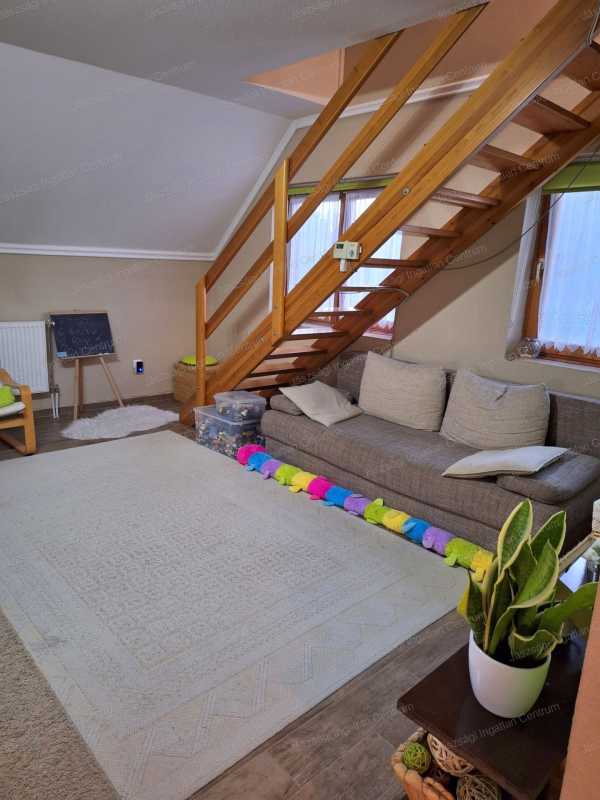 Irodánk eladásra kínál Jászberényben 332 nm-es telken lévő, 208 nm-es családi házat. 1985-ben épült beton alapzatra, falazata pedig szilikátból. Alsó szinten nappali, konyha+étkező, közlekedő, fürdőszoba, wc, kazánház, garázs található. Felső szint két külön bejárati részre van osztva, egyik részén két szoba, fürdőszoba+wc, közlekedő került kialakításra, másik részén konyha, nappali, kamra lett kialakítva, igény szerint a kamrán keresztül összenyitható a két rész. / A rajzon nyílall jelölöm./ Tetőtérben, mely 2005-ben lett felújítva, egy szoba, fürdőszoba+wc, közlekedő lett kialakítva. A hátsó rész külön bejárattal rendelkezik, kondenzációs kazán biztosítja a fűtést és a melegviz ellátást + egy hűtést biztosító klíma is került felhelyezésre. Különálló rész rendekezik külön mérőórákkal /gáz és víz/. 2005-ben a villanyhálózat cseréje is megtörtént, rézvezetékkel áthúzva! A telken fúrott kút található, mely alkalmas kis konyhakert locsolására. A telken több tároló találhatók. Ajánlom befektetők számára, több generációs családoknak, központtól gyalogosan kb 10 percnyire található. Közelben bolt, iskolák, ovoda, buszpályaudvar. Csendes utcában, jó szomszédok társaságában található az ingatlan. Ha felkeltettem érdeklődését, hívjon bizalommal, nézzük meg együtt!
