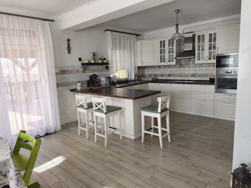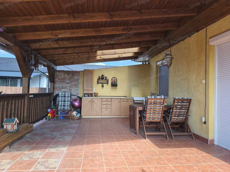 Mediterrán elegancia és időtálló minőség Nyírszőlős szívében Nyíregyháza–Nyírszőlős egyik legkedveltebb, frekventált utcájában kínálunk megvételre egy mediterrán stílusú, redukált 141 m²-es(109nm lakótér,24nm terasz,40nm garázs), igényesen megépített családi házat, amely egy 1438 m²-es, parkosított telken helyezkedik el. Az ingatlan minden részletében a harmóniát, kényelmet és minőséget képviseli. Tágas terek, napfény, otthonosság A ház központja a lenyűgözően világos, amerikai-konyhás nappali, ahol a kandalló nemcsak meghitt hangulatot teremt, hanem az egész otthon melegéről is gondoskodik. A külön nyíló hálószobák a tágas közlekedőről érhetők el, biztosítva a család minden tagja számára a privát életteret. A fürdőszobában zuhanyzó és kád egyaránt helyet kapott, a mindennapi kényelmet külön WC kézmosóval, mosókonyha és kamra teszi teljessé. Kapcsolódás a kerthez A 24 m²-es, délnyugati tájolású fedett terasz tökéletes helyszíne a nyári reggeliknek vagy az esti kikapcsolódásnak. A gondosan parkosított kert gyümölcsfákkal és fúrt kútról történő öntözés biztosítja a zöld környezet állandó szépségét. Műszaki tartalom – kompromisszumok nélkül 38 cm-es tégla falazat Cseréptető Új, korszerű kondenzációs gázkazán Padlófűtés a hidegburkolatos helyiségekben Radiátoros hőleadás a hálószobákban Klíma a kellemes hőérzetért Műanyag, hőszigetelt nyílászárók redőnnyel Fa belső ajtók Riasztó- és kamerarendszer Elektromos automata kapuk Ipari áram Gépesített konyha A ház alatt 40 m²-es garázs és tároló található, amely kényelmes és praktikus megoldást biztosít. Ez az ingatlan ideális választás azok számára, akik értéket, minőséget és nyugodt kertvárosi életérzést keresnek, kompromisszumok nélkül.