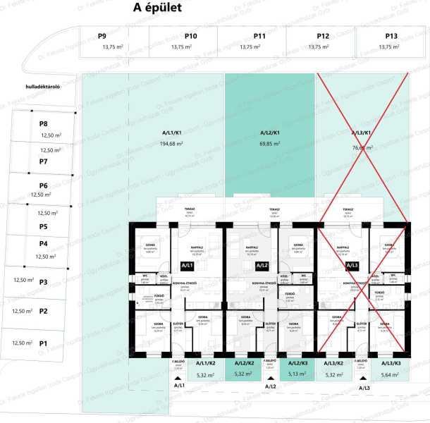 Modern, energiatakarékos, igényes otthon vár rátok a Hegyalja Lakóparkban, Győrújbaráton. Vásárolj beruházótól! – Menj biztosra, foglald le most, még 3 db ingatlan közül választhatsz fűtéskészen. Kulcsrakész befejezés is igényelhető: 110.000 Ft / nm, külön műszaki leírás alapján. A saját otthon nem álom – most kedvező feltételekkel, akár 50 M Ft hitellel 3%-os kamattal, az Otthonteremtési Hitelprogrammal és a Babaváró támogatással. Elérhető ingatlanok: A tömb - L1- szélső lakás - fűtéskész átadás: 2026. október vége Nettó lakótér 66,55 nm + 10,75 nm terasz + 195 nm saját kert Fűtéskész ár: 69.500.000 Ft + felszíni gk. beálló: + 2.500.000 Ft A tömb - L2 - középső lakás - fűtéskész átadás: 2026. október vége Nettó lakótér: 66,55 nm + 14,3 nm terasz + 70 nm saját kert Fűtéskész ár: 66.500.000 Ft felszíni gk. beálló: + 2.500.000 Ft B tömb - L2 - középső lakás– fűtéskész átadás: 2026. április vége Nettó lakótér: 66,55 nm + 14,3 nm terasz + 72 nm saját kert. Fűtéskész ár: 66.500.000 Ft + felszíni gk. beálló: + 2.500.000 Ft Minden lakás mérete megegyezik, csak a kert mérete változó. (Lásd alaprajzok) Műszaki Tartalom • Beton alapozás, tégla teherhordó falazat, 20 cm-es külső szigetelés • Magas tetős kialakítás, komplett tetőszerkezettel, ereszcsatornával • Aljzatbeton elkészítve, egyenletes, burkolásra előkészített felülettel • 6 m2-es padlástér • A nappaliban a klíma beltéri egységnek csordalékvíz elvezetés kiépítés • Elektromos redőny előkészítés • Elektromos hálózat alapszerelve. A lakások csatlakozási teljesítménye 1x32 A • Külön mérőóra kialakítás minden lakáshoz • 3 rétegű hőszigetelt nyílászárók (u=0,7), bejárati ajtó: MABISZ minősítésű • BOSCH kondenzációs kazán az optimalizált padlófűtéshez • A fürdő és WC rendkívül hatékony kürtős szellőztetést kap a középső lakásban • A szélső lakások természetes szellőzést biztosító ablakkal ellátottak • A kertkapcsolat átlapolt 220cm átláthatatlan antracit kerítéssel készül • Bejáratnál csengő, világítás lámpával, az ehhez tartozó kapcsoló kerül kialakításra • Modern, esztétikus színezés • Víz- és szennyvízhálózat kiépítve 1 db kerti csap kiállás a teraszon Külső környezet: • járdák, • Gépkocsibeállók kockakő burkolattal 2,5 M Ft / db • Terasz: fagyálló térkő burkolattal • Alkonykapcsolós külső világítás Opcionális tételek: • 2 KW napelem • Gondozásmentes kert • gyepszőnyeg telepítés • automata öntözőrendszer • robotfűnyíró lehetőség Ez a projekt tökéletes választás: • aki modern, energiatakarékos és igényesen kivitelezett otthont keresnek • családosoknak, akik saját igényeik szerint szeretnék befejezni otthonukat • befektetőknek, akik értéknövelő lehetőséget keresnek • Sétatávolságon belül: üzlet, posta, iskola, óvoda. Kulcs nálam, várom hívásod! +36 20 481 3369 Hartmann-né Viki A hirdetésben szereplő friss képek mellett, a már elkészült / átadott lakásokról készült fotók láthatóak, amelyek a leendő ingatlanod méretével azonosak. A képek és a látványképek az értékesítés célját szolgálják.