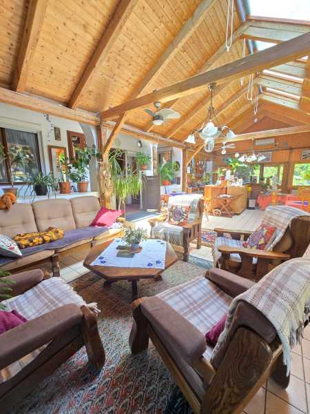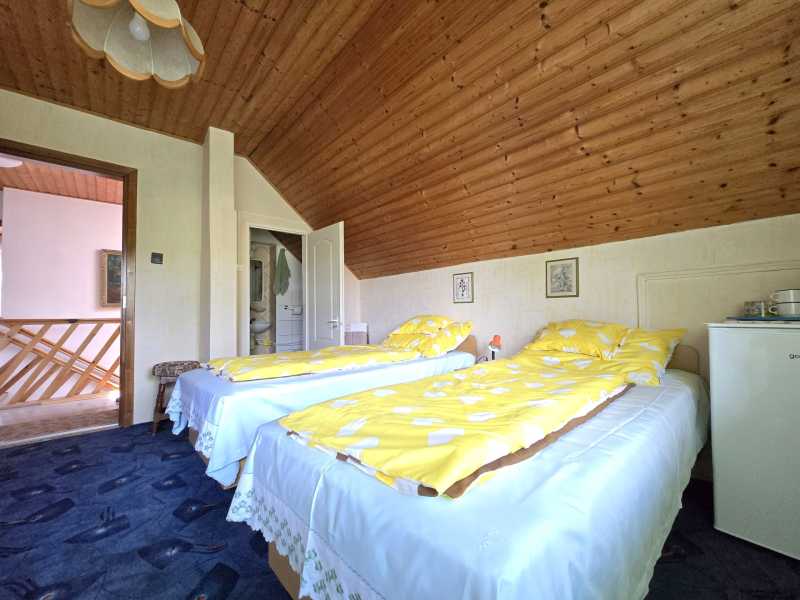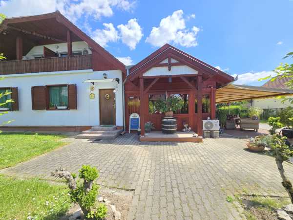 Kehidakustány csendes, zöldövezeti részén eladó egy különleges hangulatú, gondosan karbantartott ingatlan, amely tökéletes lehet nagycsaládos otthonnak vagy akár jól jövedelmező apartmanháznak is. A ház melegséget és harmóniát áraszt – egy hely, ahol igazán otthon lehet lenni. Különleges nappali – természetközeli otthonérzet Az 50 nm-es, faházhatású nappali a ház szíve: tágas, világos, nagy belmagasságú tér, ami a természetes anyagokkal és a beáradó fénnyel igazi békés menedék. A fatüzelésű kályha az előtérben nemcsak hangulatos, de praktikus kiegészítő is a hűvösebb napokra. Tágas élettér – családoknak, több generációnak is tökéletes A 44 nm-es fedett terasz tökéletes reggeli kávézáshoz vagy esti borozáshoz. Jól bejáratott apartmanház – biztos bevételi forrás A különálló 62 nm-es apartmanház és a ház emeletén lévő 3 apartman 9.5/10-es vendégértékeléssel rendelkezik, visszatérő vendégek egész évben. Teljesen felszerelt, azonnal üzemeltethető. Álomszép kert – hely a pihenésre és az ünnepekre A 2500 nm-es, széles telek ősfás, virágos, gondozott, körbekerített. Grillezéshez, gyerekzsúrokhoz, baráti összejövetelekhez kiváló – egy darab természet a saját otthonodban Műszaki jellemzők – stabil alap, korszerű kényelmi extrák • Építés éve: 1989 – B30-as tégla, betonfödém, cseréptető • 206 nm főépület + 62 nm apartman • 5 éve felújítva: nappali, tetőablakok részleges villanycsere 7 db klíma modern fűtés (2 gázkazán) külső festés, elektromos kapu apartmanok tetőfelújítása Kehidakustány előnyei – csend, gyógyvíz, élmény Nyugodt, barátságos környezet a Zalai-dombság szívében Kehida Termálfürdő pár perc Balaton 20 perc, Hévíz, Keszthely közelsége Miért különleges ez a ház? Mert melegséget áraszt. Mert a nappali nemcsak szép, hanem történetet mesél – faburkolat, fény, csend és tér mind azt mondják: "Itt jó élni. Itt jó megállni. Itt jó lenni." Irányár: 114.900.000 Ft (= 428.731 Ft/nm – bútorozottan, kisgépekkel, vendéglátásra felszerelve!)