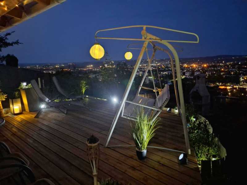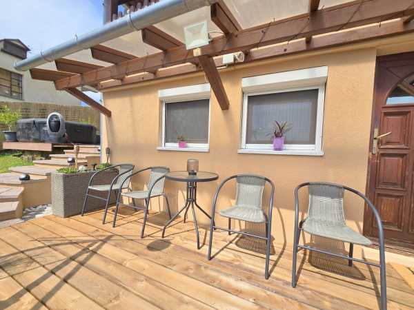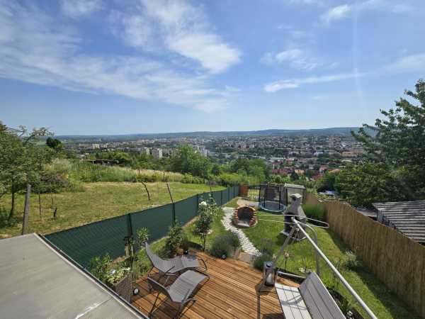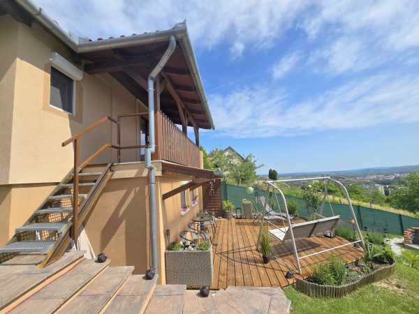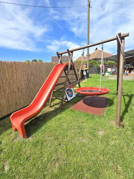 Elképesztő városi panoráma minden napra – olyan kilátás, amit képtelenség megunni! A nappaliból, az erkélyről és a kert különböző szintjeiről is pazar, szinte képeslapszerű kilátás nyílik Zalaegerszegre. Itt a naplemente nem csak egy napszak – ez egy élmény. Miért különleges ez az ingatlan? • Teljesen felszerelt és berendezett – csak csomagold a ruháidat, és költözz be • Tökéletes kulcsosház, nyaraló és befektetés • Csendes, nyugodt környék, de kiváló közlekedéssel • Minden marad, amit a képeken látsz – bútorok, gépek, szerszámok, kerti berendezések Főbb adatok: • 60 nm-es, kétszintes téglaépület (2000-es építés, azóta bővítve, teljes körűen felújítva és szigetelve) • Földszint: nappali, konyha, háztartási helyiség • Emelet: 3 hálószoba, fürdőszoba, külön WC • Erkély és terasz a pihenéshez, vendégfogadáshoz Műszaki tartalom: • Gáz cirkó fűtés + hűtő-fűtő klíma • Teljes réz elektromos hálózat • Fa nyílászárók redőnnyel és szúnyoghálóval • Elektromos kapuk, belátásgátló nádkerítés • Teljes géppark: BOSCH, LG, Whirlpool, Samsung – minőségi háztartási kis- és nagygépek • Kerti gépek is maradnak: STIHL fűnyíró, lombfúvó, Kaercher magasnyomású tisztító Telek és kert: • Művelés alól kivont zártkert – nincs kifüggesztési kötelezettség • Lejtős, de kiszintezett, három jól elkülönülő szinttel kialakított udvar • Körbekerített, az alsó rész külön elkerítve, kutyakennellel • Gyümölcsfák: alma, körte, szilva, barack, meggy, cseresznye • 5,5 m³ esővízgyűjtő tartály a kert öntözéséhez Extra felszereltség a pihenéshez és szórakozáshoz: • 4 személyes jacuzzi pezsgőfürdővel • Játszótér, trambulin, grillező, tűzrakóhely • Hintaszék, napágyak, teljes teraszbútorzat Gépjárműveknek: • Szigetelt garázs Hörmann kapuval • Fedett kocsibeálló + további két autónak hely az udvarban Lokáció – Zalaegerszeg és környéke előnyei: • Csendes, kertvárosias környezet, mégis közel a városhoz • Zalaegerszegi Aquapark és Termálfürdő – élmény minden korosztálynak • Gébárti-tó – strandolás, horgászat, vízisport • Balaton mindössze 30-35 perc autóval