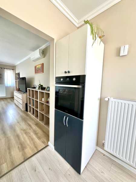Zalaegerszegtől mindössze 16 km-re, Petrikeresztúron eladó egy IGÉNYESEN FELÚJÍTOTT 4 szobás családi ház – 7 452 m²-es sík telekkel, dupla GARÁZZSAL, terasszal, kerti kiülővel! Főbb jellemzők: Épület alapterülete: 123,5 m² (hasznos: 101 m²) Telek mérete: 7 452 m² (ebből 1800 m², illetve a gyümölcsös KÖRBEKERÍTVE) Szerkezet: beton alap, Porotherm téglafal, vasbeton födém (beépíthető tetőtér), Bramac betoncserép Szigetelés: aljzat, lábazat, homlokzat (10 cm), födém Fűtés-hűtés: a melegért és a melegvíz-ellátásért 4 éves korszerű cirkó gázkazán gondoskodik radiátor hőleadókkal + hűtő-fűtő klíma + Vegyestüzelésű kazán számára a csatlakozás kiépítve Nyílászárók: 2 rétegű hőszigetelt műanyag ablakok redőnnyel, szúnyoghálóval, az előszobában 3 rétegű ablak Áramhálózat: 2011-ben felújítva - réz vezetékek, 1 fázis 32 A (3 fázis behúzva, csatlakozás lehetséges) Elosztás: Tágas nappali Konyha külön kamrával 3 külön bejáratú, tágas lakószoba Fürdőszoba káddal + külön toalett Előszoba Kiegészítő épületek & közművek: Dupla, 40 m²-es garázs – kényelmes parkolás két autó számára 15 m²-es fatároló Fedett, 20 m²-es kerti pihenő – tökéletes családi összejövetelekhez Kerti tárolók, melléképületek 18 m²-es földpince Vízzel, gázzal, árammal ellátott ingatlan; szennyvíz: jelenleg zárt szennyvíztároló, hamarosan csatornahálózat a községben Kert & gazdálkodás: Gondozott telek, bőségesen termő gyümölcsfák (szilva, cseresznye, barack, alma, körte, meggy, birsalma, eperfa) Önellátó gazdálkodásra és állattartásra alkalmas hatalmas terület 2 db 1,5 m3-es vízgyűjtő tartály 33 m széles utcafront két telekhatáron (22 m + 11 m), a kisebb belterületi telek később akár önállóan is értékesíthető vagy beépíthető Miért érdemes megnézni? Azonnal költözhető, felújított állapot, korszerű szigetelés és gépészet Extra értéke, hogy a vételár részét képezi a 2 100 m², külön helyrajzi számon nyilvántartott akácos terület, ami később hasznosítható vagy eladható Magas minőségű kivitelezés tégla, vasbeton és Bramac tető kombinációjával Gazdasági lehetőségek: állattartás, kertgazdálkodás, akár bérbeadásra is Petrikeresztúr község, aprófalu Zala vármegye középső részén, a Zalaegerszegi járásban, a Zalai-dombság lankái közt, a Göcsej tájegység területén. A zalai megyeszékhely, Zalaegerszeg 16 km, a Balaton 50 perc, Szlovénia 30 perc, az osztrák határ 1 órás autóúttal elérhető. A településen van bolt, illetve falubusz biztosítja az óvodások, iskolások és idősek közlekedését a környező településekre. Az ingatlan CSOK Plusz-ra és Falusi CSOK-ra is alkalmas, PER ÉS TEHERMENTES. Érdeklődj még ma, és találd meg álmaid otthonát a zalai dombok közt!